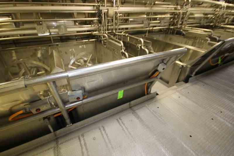 Used 300 Cu Ft Stainless Steel Ribbon Blender. Trough dimensions: 144" L x 60" W x 66" Deep. 100 hp Motor, 1785 RPM, 460 Volts, 3 Phase. Bottom Discharge, Overall 186" L x 67" W x 107" H. Stainless Steel Leg mounted. Serial # 70190