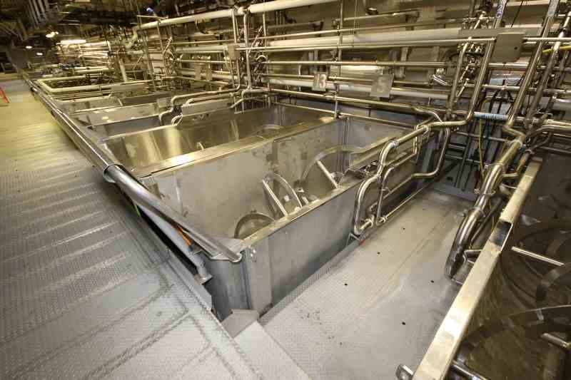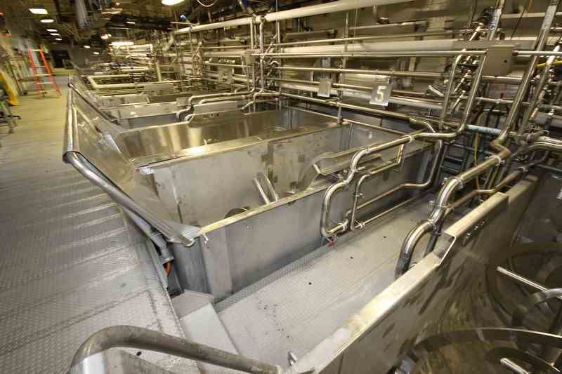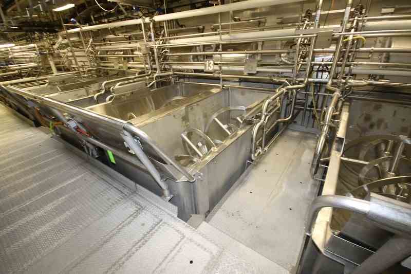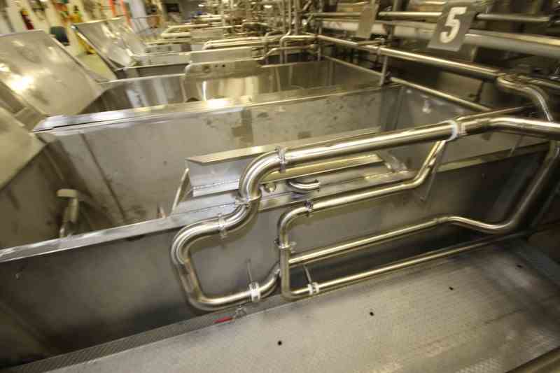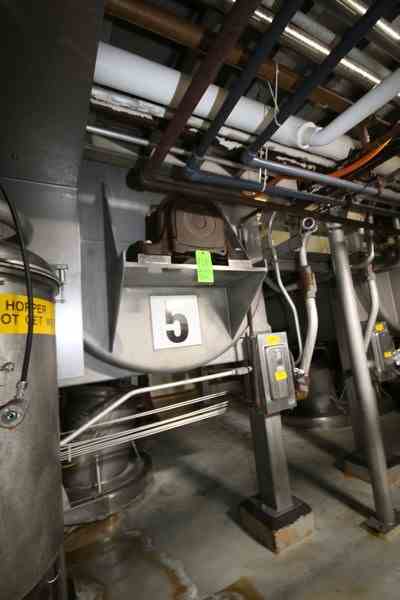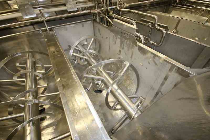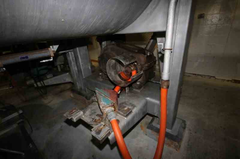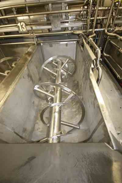 Used 300 Cu Ft Stainless Steel Ribbon Blender. Approx 270 Cu Ft working volume. Trough dimensions: 144" L x 60" W x 66" Deep. 100 hp Motor, 1785 RPM, 460 Volts, 3 Phase. Bottom Discharge, Overall 186" L x 67" W x 107" H. Stainless Steel Leg mounted. Serial #70-198. Missing Motor.