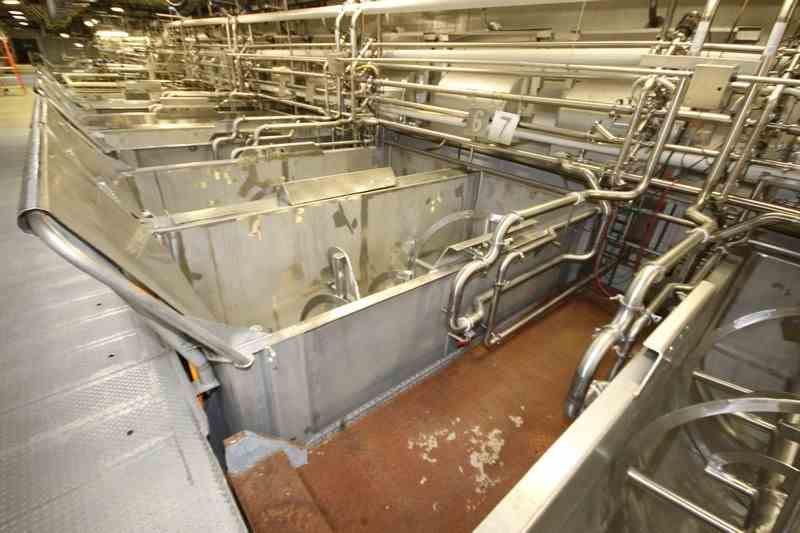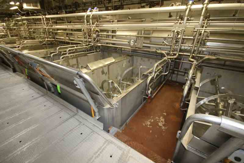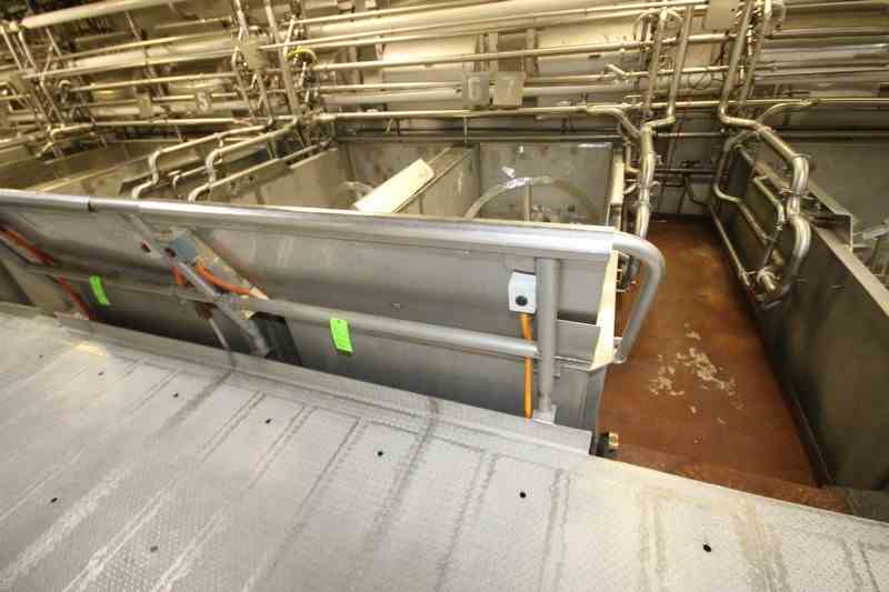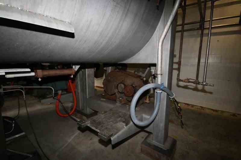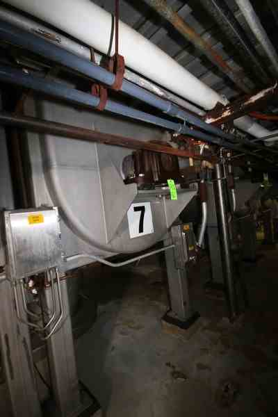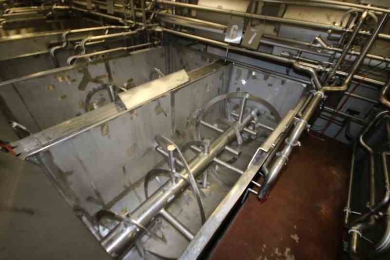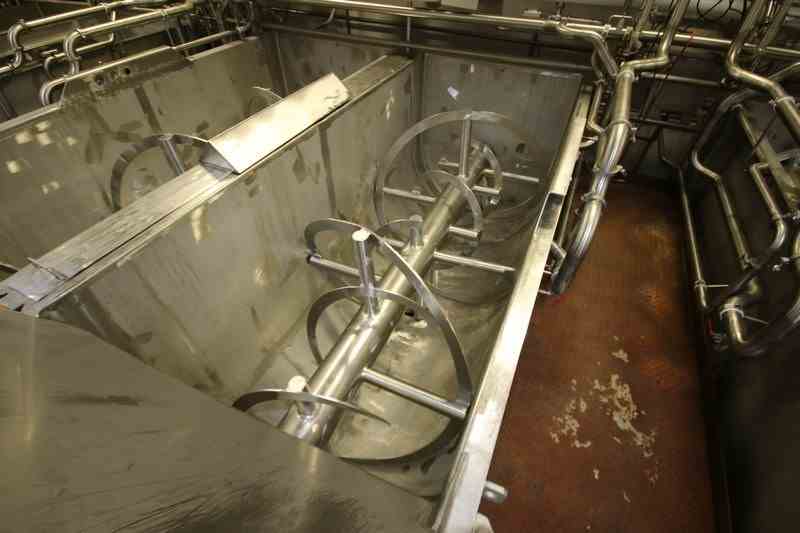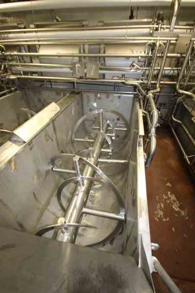 Used 300 Cu Ft Stainless Steel Ribbon Blender. Approx 270 Cu Ft working volume. Trough dimensions: 144" L x 60" W x 66" Deep. 100 hp Motor, 1785 RPM, 460 Volts, 3 Phase. Bottom Discharge, Overall 186" L x 67" W x 107" H. Stainless Steel Leg mounted. Serial # 70-197. Missing Chain and motor.