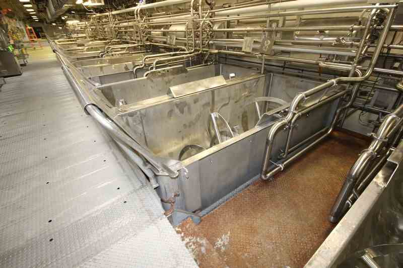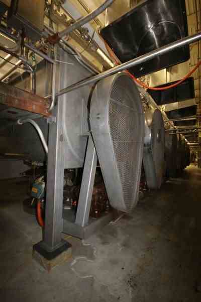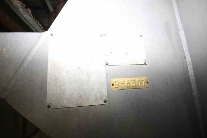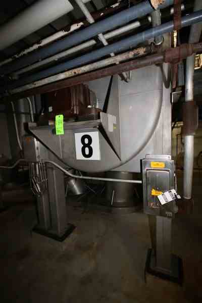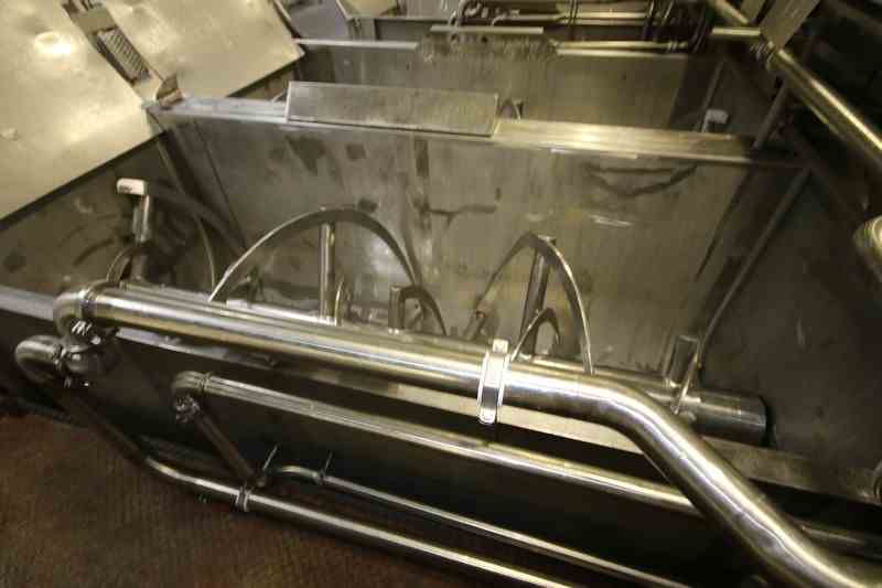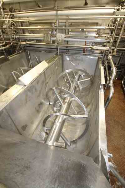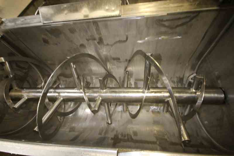 Used 300 Cu Ft Stainless Steel Ribbon Blender. Approx 270 Cu Ft working volume. Trough dimensions: 144" L x 60" W x 66" Deep. 100 hp Motor, 1785 RPM, 460 Volts, 3 Phase. Bottom Discharge, Overall 186" L x 67" W x 107" H. Stainless Steel Leg mounted. Serial #70-196. Bad motor.