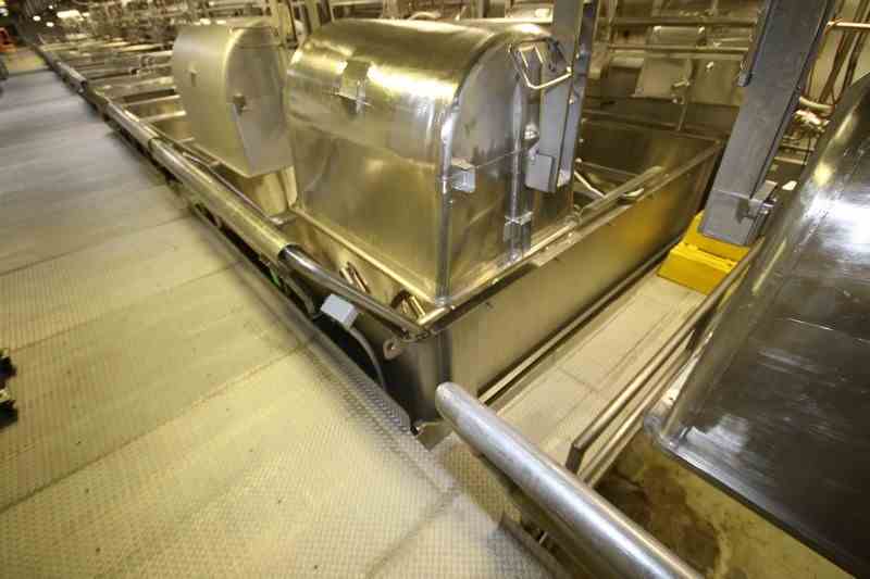 Used 300 Cu Ft Stainless Steel Ribbon Blender. Approx 270 Cu Ft working volume. Trough dimensions: 144" L x 60" W x 66" Deep. 100 hp Motor, 1785 RPM, 460 Volts, 3 Phase. Bottom Discharge, Overall 186" L x 67" W x 107" H. Stainless Steel Leg mounted.