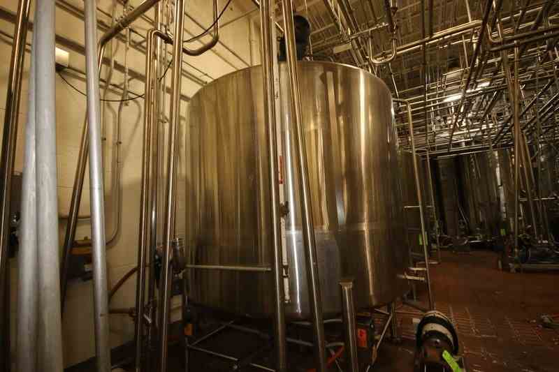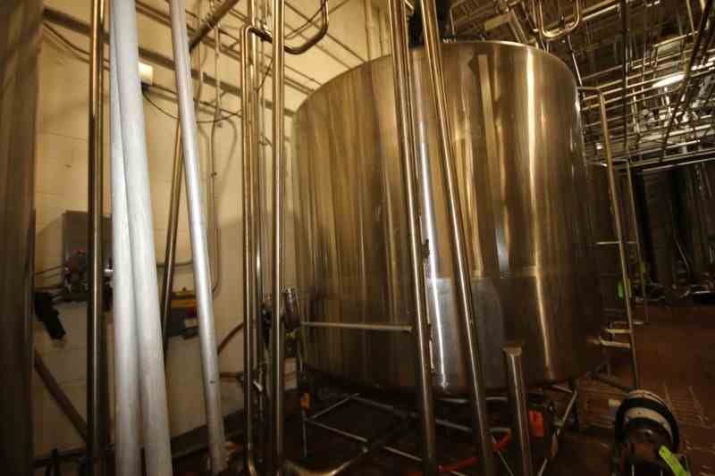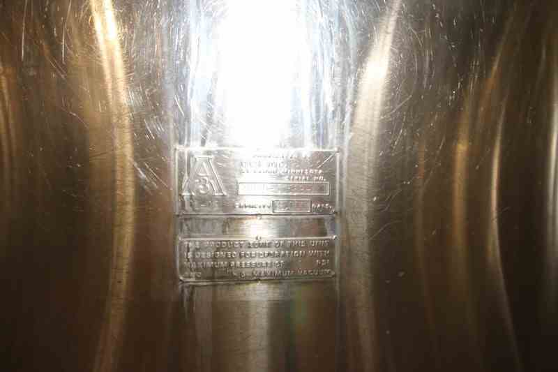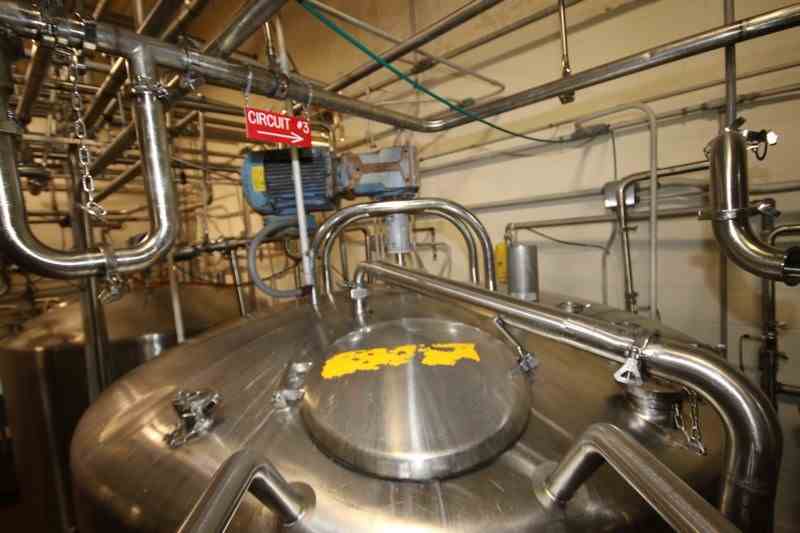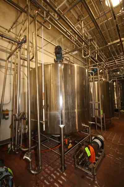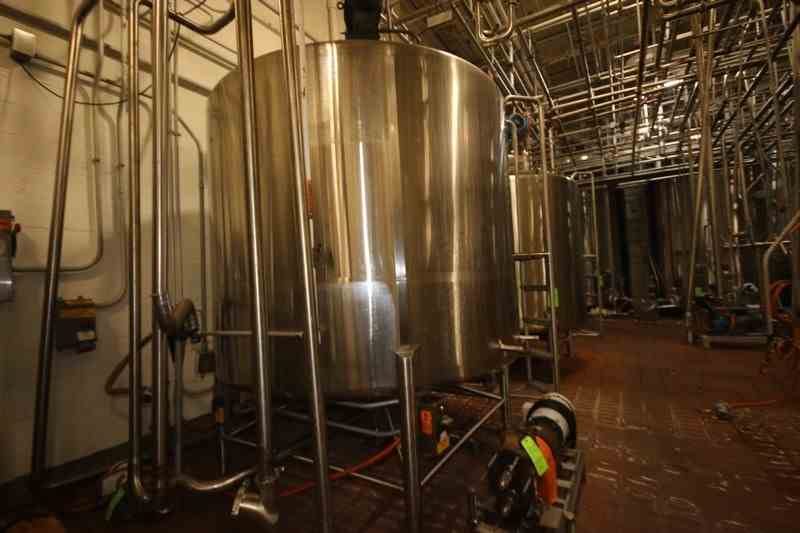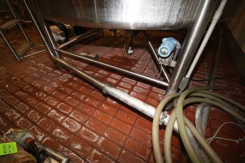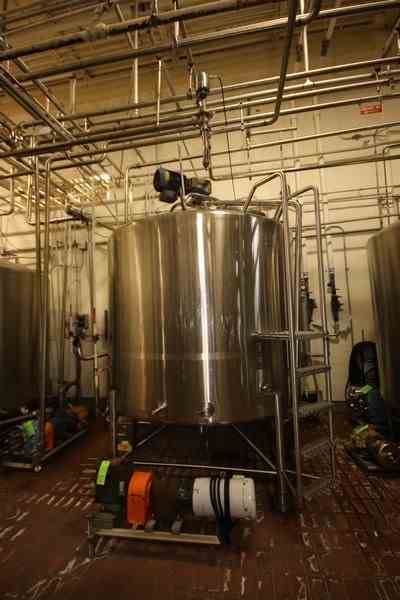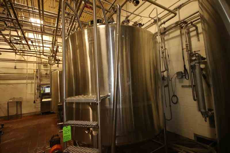 DCI 2,000 Gal. S/S Single Wall Tank, S/N 92-D-44569-A, with Dual CIP Spray Ball, Dome Top/Cone Bottom, Mounted on S/S Frame & Load Cells, with Fairbanks Digitial Read Out, with Top Mounted Agitation Motor, with S/S Man Ladder (LOCATED IN CHAMPAIGN, IL)