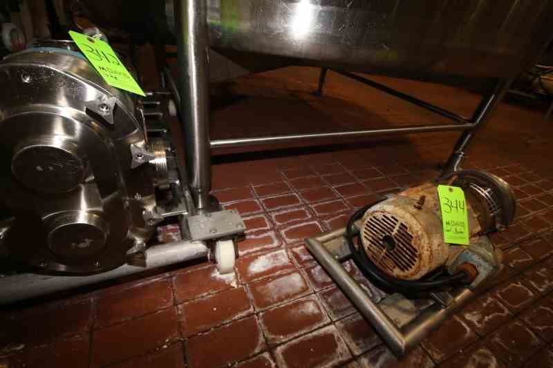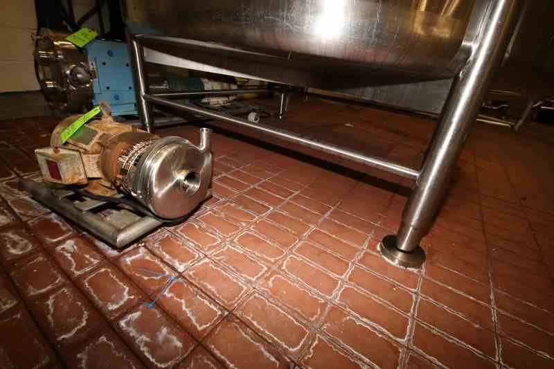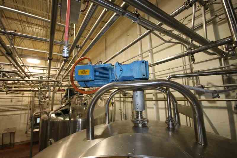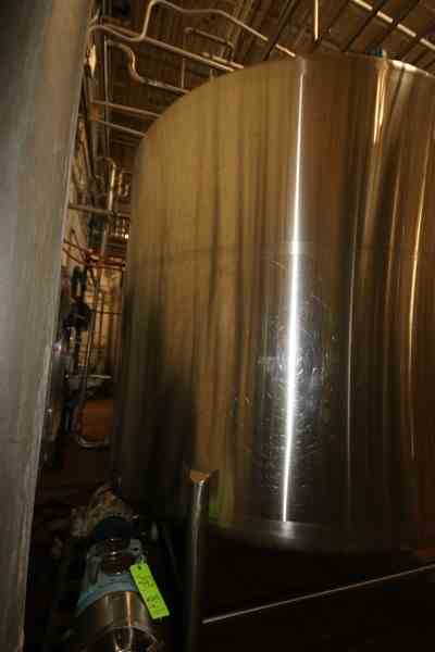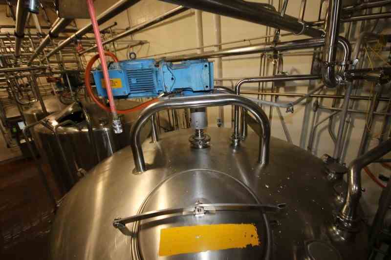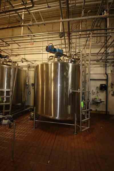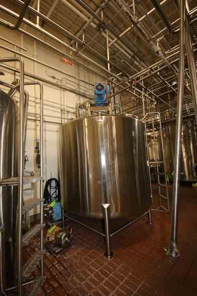 Used 2,000 Gal. S/S Single Wall Vertical Tank, Tank Internal Dims.: Aprox. 83" Tall x 88" Dia. with Dual 4-Prop Vertical S/S Agitation, Dome Top/Slope Bottom, with Top Mounted Agitation Motor (LOCATED IN CHAMPAIGN, IL)