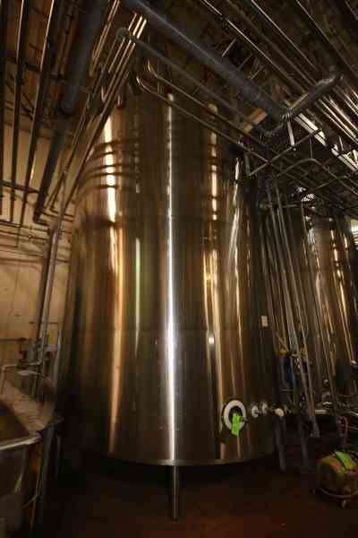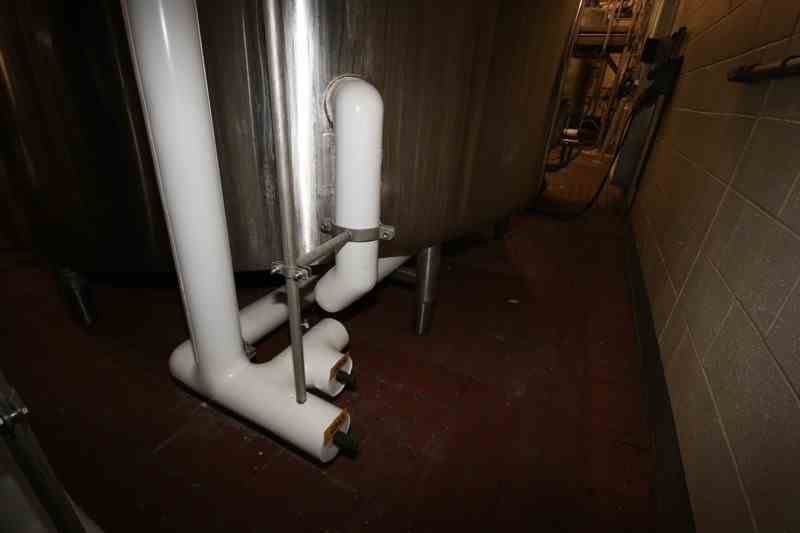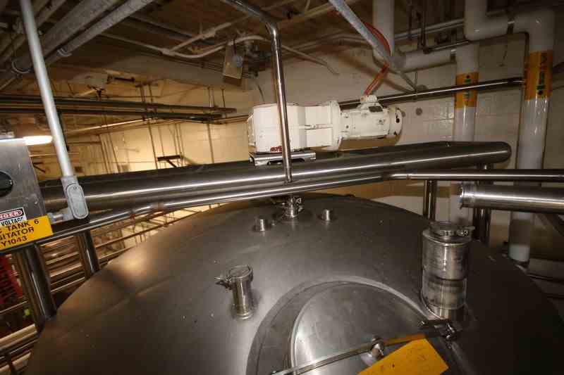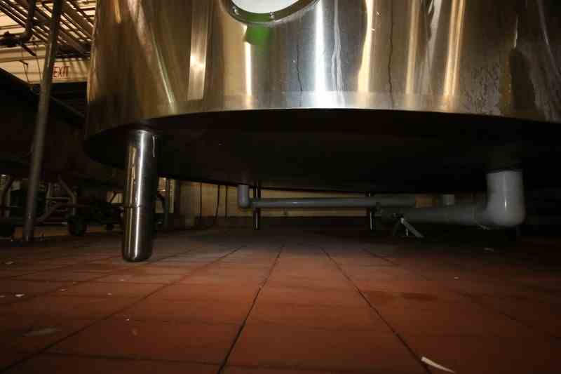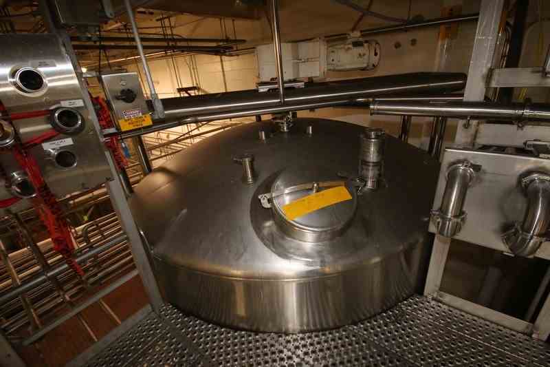 Used 7500 Gallon 316L Stainless Steel Jacketed Mix Tank. Manufactured by DCI. 22 gallon Jacket MAWP 150/FV PSI @100F. Top mounted 7.5HP motor 460/60/3 with Anchor-sidesweep agitation. Dome top, sloped bottom. 18" Top Manway. (6) Leg mounted. 125"OD x 229"OAH. Serial #JS01249-A. Built 2000. Weight 8058 lbs. Past use Cheese plant.