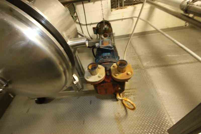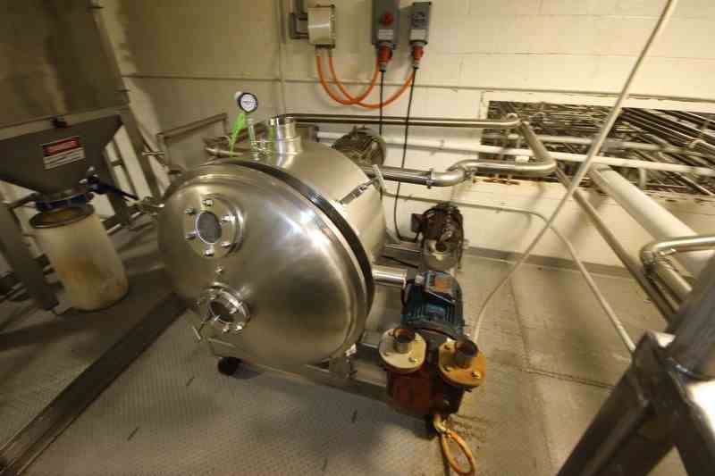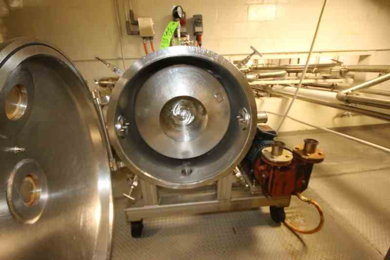 Used 20 hp Emulsion Skid, with S/S Vessel Head, Aprox. 28-1/2" Dia., with Buusch Vacuum Pump, with Additional Drive, Mounted on S/S Frame (NOTE: Addition Drive Missing Head--See Photographs).