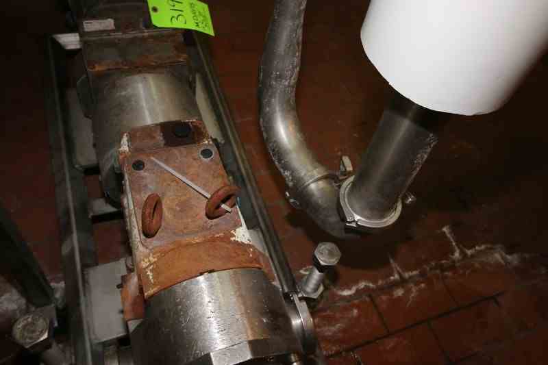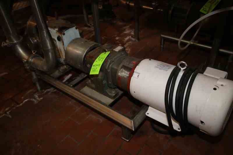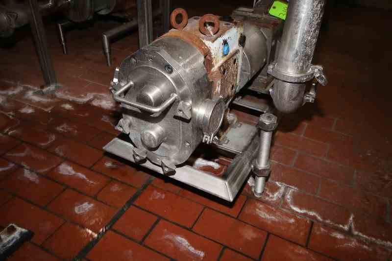 Waukesha 10 hp Positive Displacement Pump, M/N 130, S/N 357039 04, with Baldor 1770 RPM Motor, 230/460 Volts, 3 Phase, with Aprox. 3-1/2" Clampy Type Inlet/Outlet, Mounted on S/S Frame (LOCATED IN CHAMPAIGN, IL)