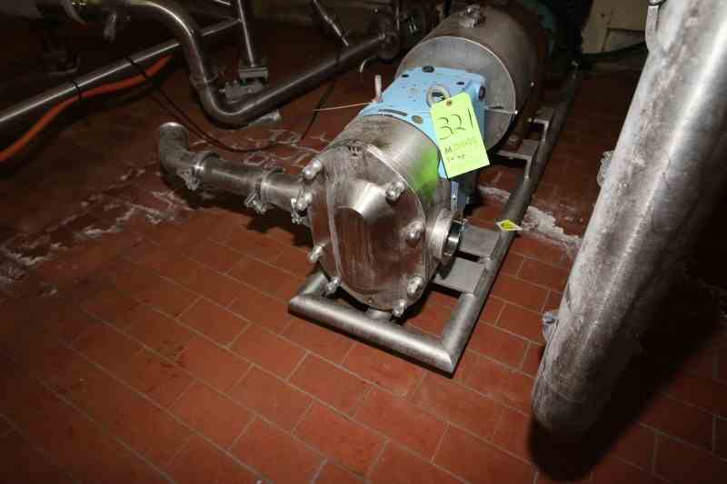 2016 SPX 30 hp Positive Displacement Pump, M/N 220 UL, S/N 100003142920, with Aprox. 4" Clamp Type Inlet/Outlet, with Reliance 1765 RPM Motor, 208-230/460 Volts, 3 Phase, Mounted on S/S Frame (LOCATED IN CHAMPAIGN, IL)