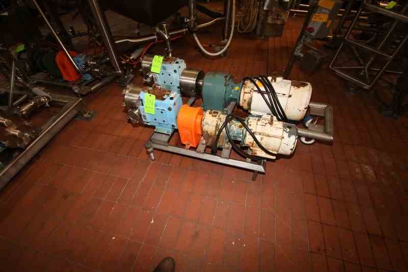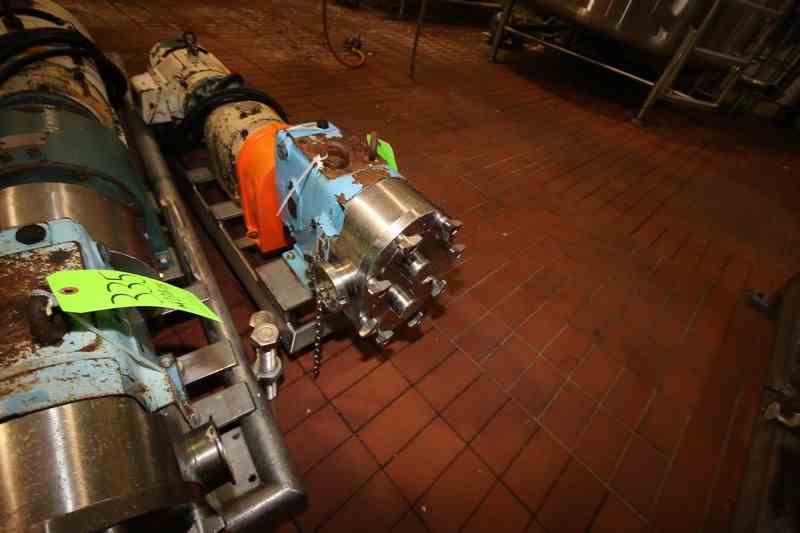 WCB 10 hp Positive Displacement Pump, M/N 130, S/N 426744 07, with Reliance 1745 RPM Motor, 208-230/460 Volts, 3 Phase, with Aprox. 3" Clamp Type Inlet/Outlet, Mounted on S/S Skid (LOCATED IN CHAMPAIGN, IL)