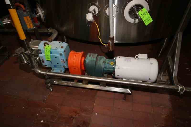 2015 SPX 7.5 hp Positive Displacement Pump, M/N 30U1, S/N 3012119 R1-3, with Baldor 1770 RPM Motor, 208-230/460 Volts, 3 Phase, with Aprox. 3" Clamp Type Inlet/Outlet, Mounted on S/S Skid (LOCATED IN CHAMPAIGN, IL)