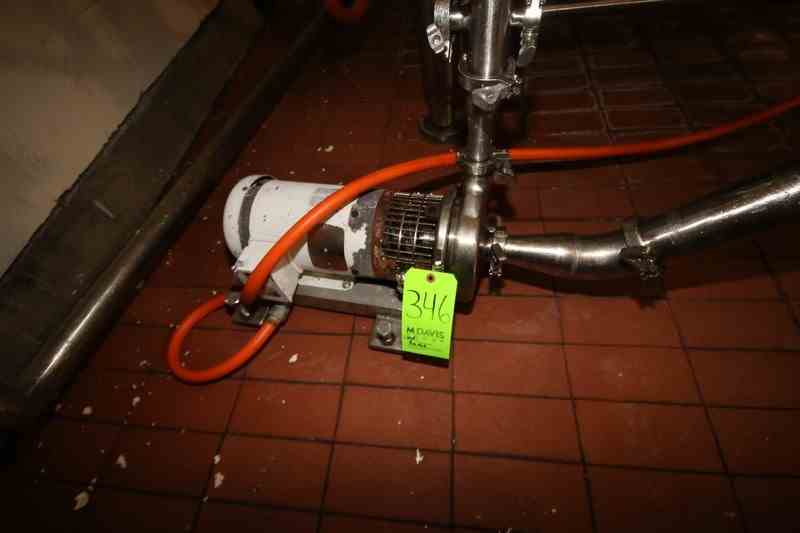 Tri-Clover 2 hp Centrifugal Pump, S/N 105545-03, with Aprox. 2" x 1" Clamp Type S/S Head, with Baldor 1755 RPM Motor, 208-230/460 Volts, 3 Phase, Mounted on S/S Frame (LOCATED IN CHAMPAIGN, IL)