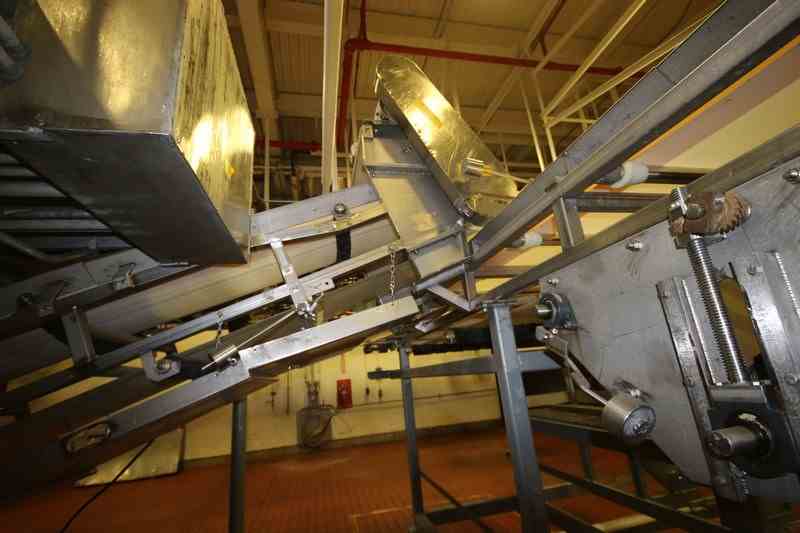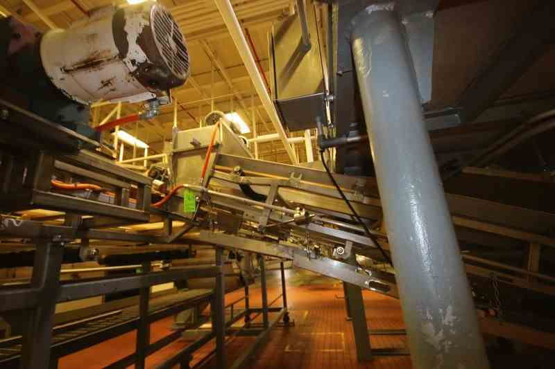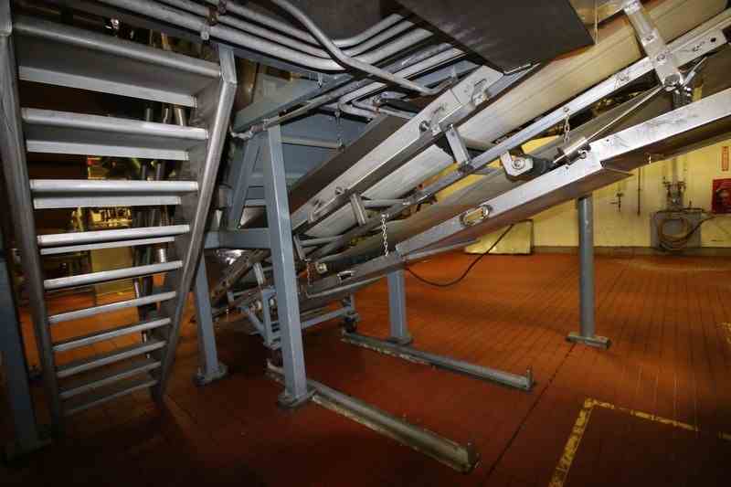 Incline Conveyor Section, Overall Length: Aprox. 20' L, Overall Height (Peak to Floor): Aprox. 92" H, On S/S Track Mounted to Floor (LOCATED IN CHAMPAIGN, IL)