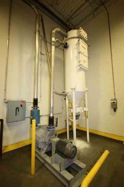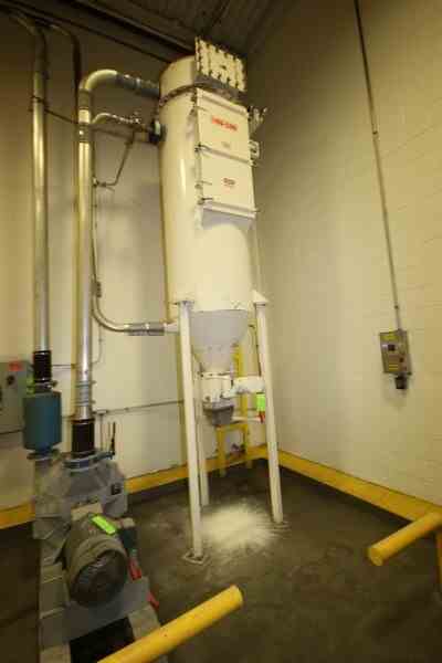 Nu-Con Dust Collection System, with Rotary Star Valve Bottom Discharge, M/N RV-02/1hp, S/N N05037-550, with 20 hp Circulation Pump, M/N 05205, S/N 0405114-21855, 230/460 Volts, 3 Phase, with Wall Mounted Panel (LOCATED IN CHAMPAIGN, IL)