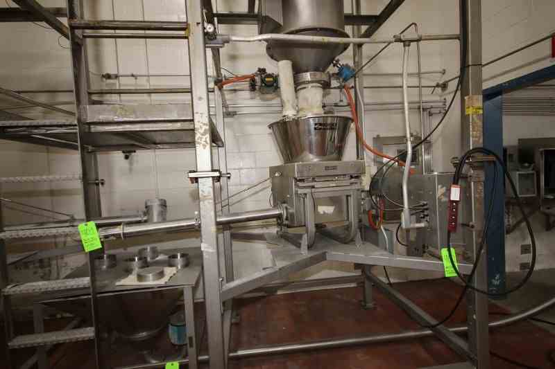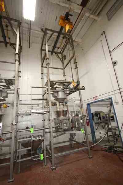 Schenck AccuRate Auger Feeder, with Leeson 1 hp Drive, with S/S Super Sac Unloading System, with Harrington 2-Ton Electric Hoist, with Cross Beam, with S/S Infeed Hopper, with S/S Uprights & Cross Beams (LOCATED IN CHAMPAIGN, IL)