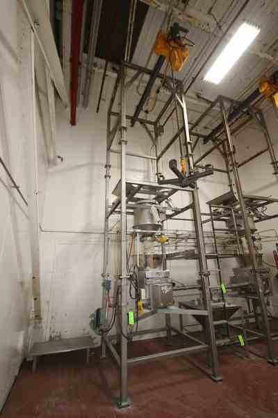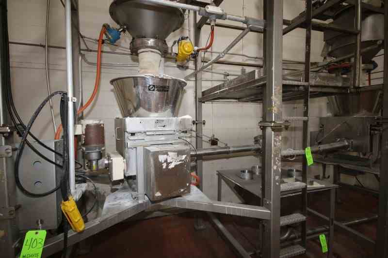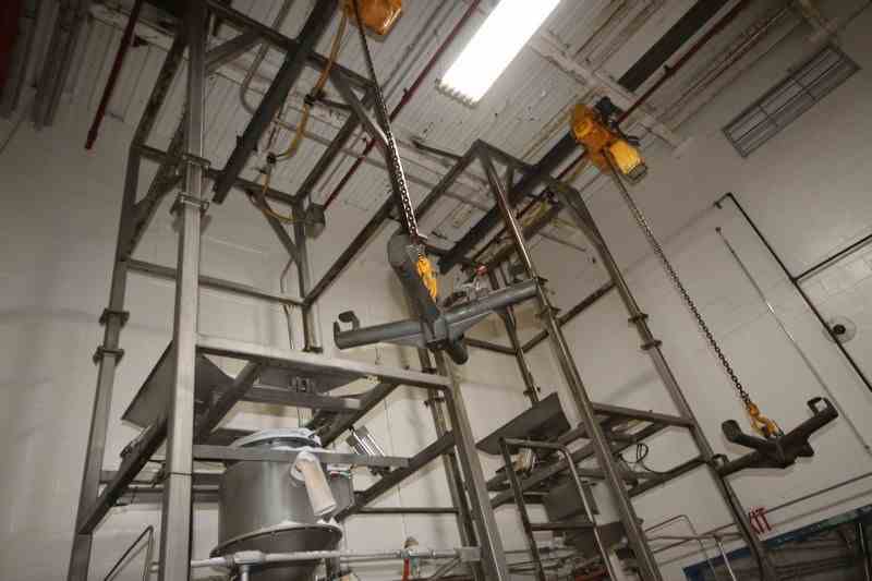 Schenck AccuRate Auger Feeder, with Leeson 1 hp Drive, with S/S Super Sac Unloading System, with Harrington 2-Ton Electric Hoist, with Cross Beam, with S/S Infeed Hopper, with S/S Uprights & Cross Beams (LOCATED IN CHAMPAIGN, IL)