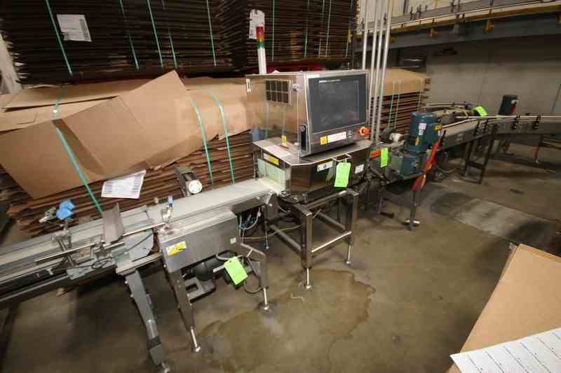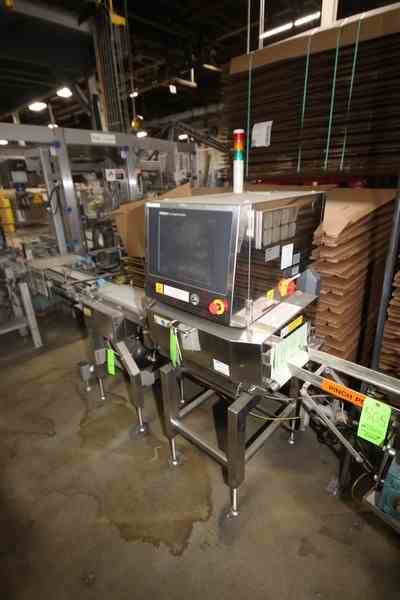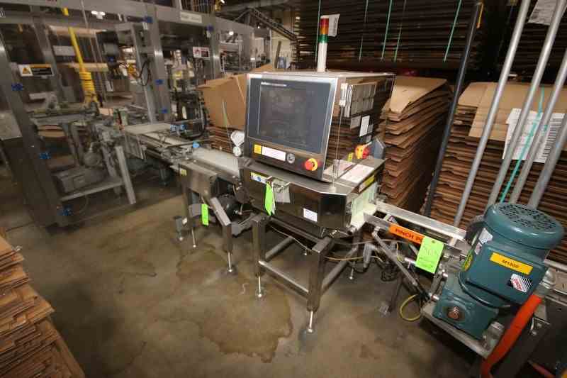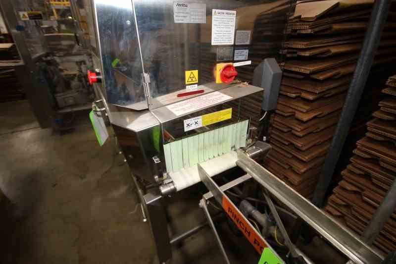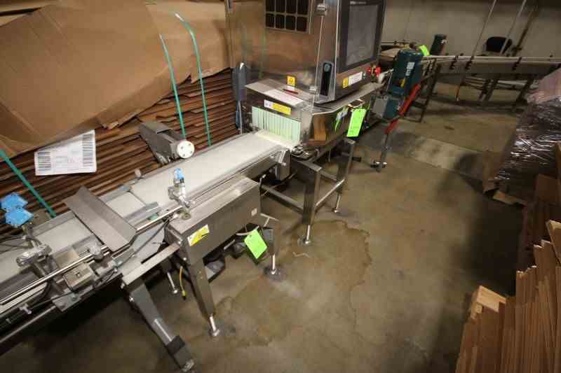 Anritsu X-Ray Inspection Machine, S/N 4600196477, with Aprox. 10-1/2" W Belt, with Aprox. 13" W x 5-1/4" H Product Opening, with Touchscreen Display, with Straight Section of Rejection Conveyor, with Pneumatic Reject Arm, Aprox. 9-1/2" W Belt, Mounted on S/S Frame (LOCATED IN CHAMPAIGN, IL)