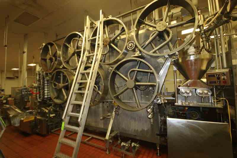 IWS 7-Wheel Single Slice Stacker, with S/S Control Panel, Includes (4) S/S Control Panels, with Allen-Bradley PLC & Other Control Components, with Dual Head Positive Displacement Fill Hopper, M/N RI-1, with Dual CTC Automatic Splicers, with Outfeed Conveyor, with (2) Touchscreen Displays with S/S Enclosures (Stacker #3) (LOCATED IN CHAMPAIGN, IL)