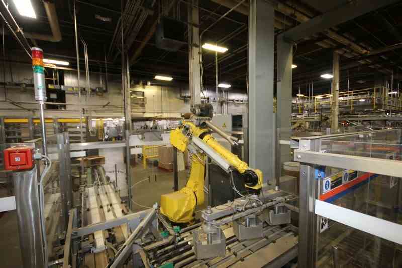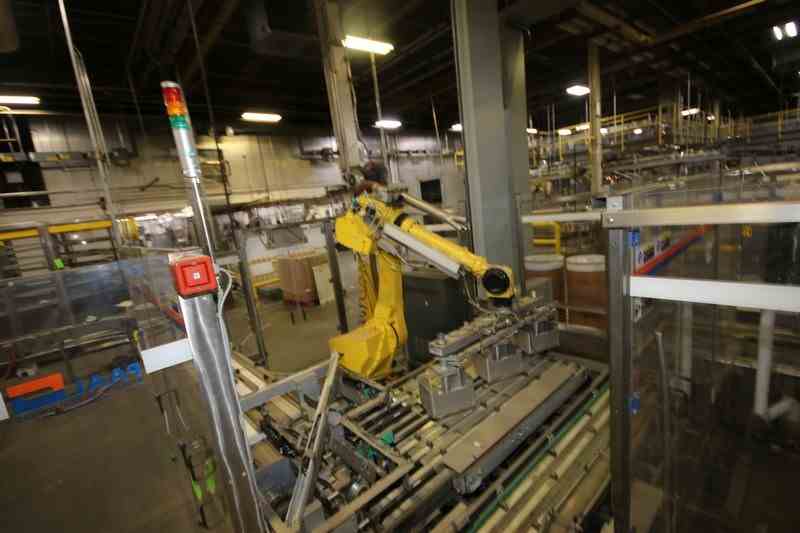 2005 PAAL Casing System, Type ELE 2000E, 115/480 Volts, with Fanuc Robotic Arm, M/N R-30iA, with Triple Grip Attachment, with (3) 3-Door Control Panels, with (8) Allen-Bradley PowerFlex 40s, with Allen-Bradley 12-Slot PLC, 12-Slot PLC, & 13-Slot PLC (NOTE: Missing (1) Slot), Includes (4) Allen-Bradley PowerFlex 40 VFDs, & (3) Allen-Bradley PanelView 1000 Touchscreens, & Other Control Components (LOCATED IN CHAMPAIGN, IL)