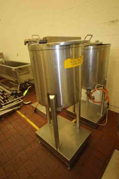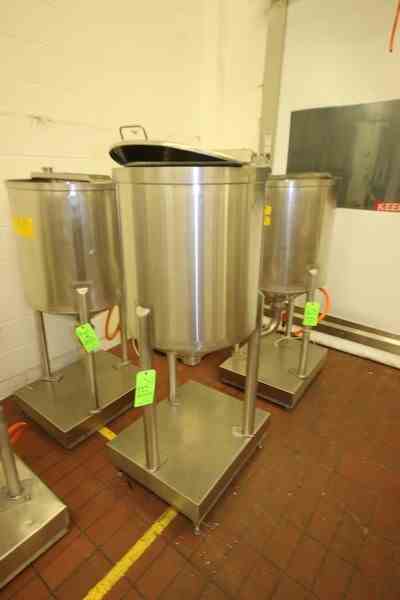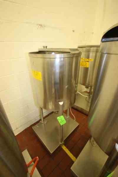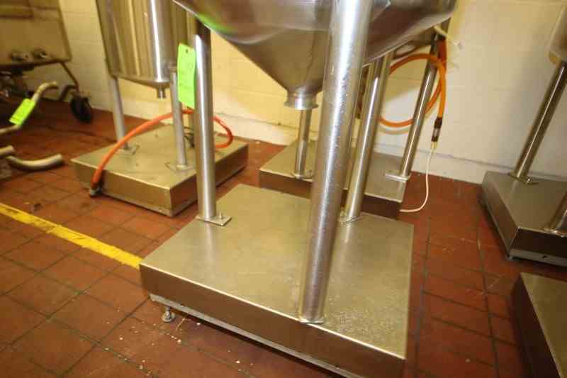 50 Gal. S/S Single Wall Vertical Tank, Internal Dims. of Tank: Aprox. 26" Tall x 24" Dia., with Cone Bottom, Mounted on S/S Base.