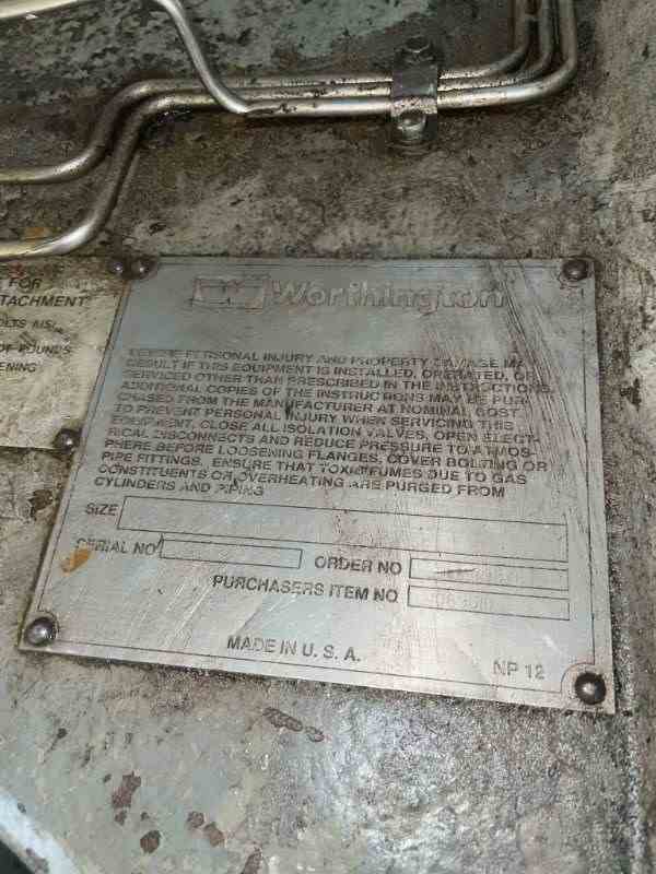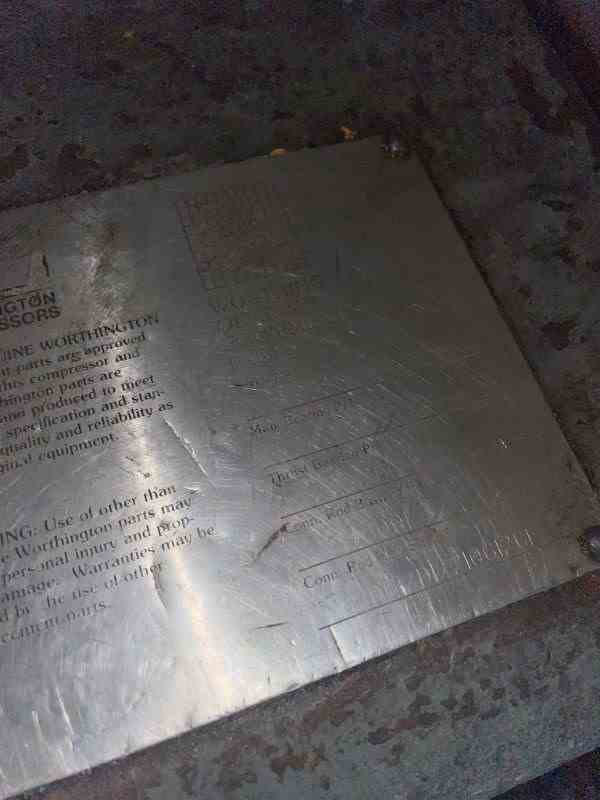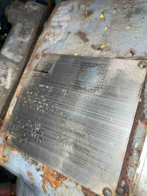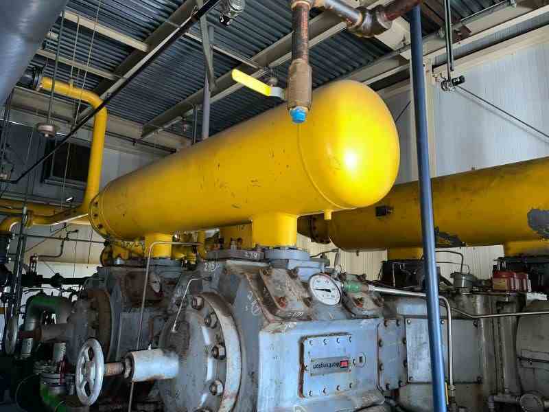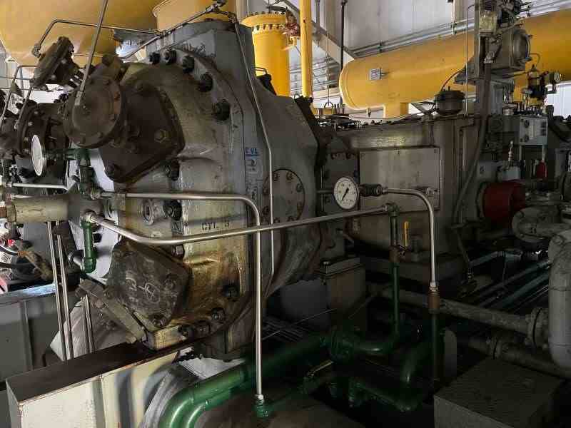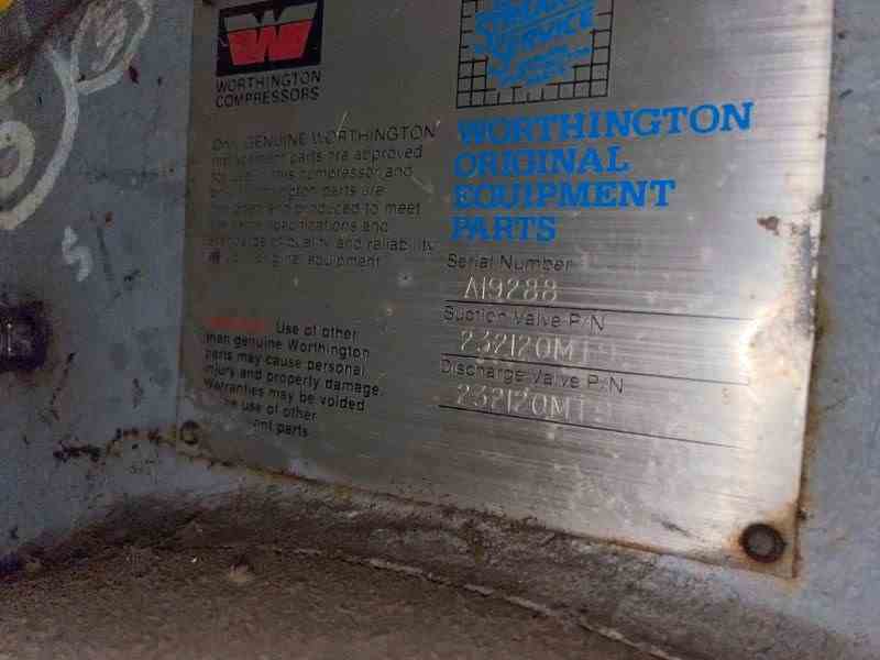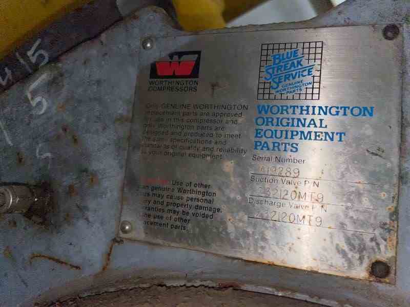 Used Worthington Reciprocating Gas Compressor. Bore 19.50, Stroke 6XH packaged skid, designed for GE 42 mw Frame 6B gas turbine. Inlet gas pressure 150 psig, outlet 400 psig., 9300 SCFM, Serial number A-19285, built 1990. Motor - GE WPI induction motor, Model 8413582401, Serial Number 840269, Type K, Frame 8409S 1500 HP, 885 rpm, 4160 v, 3 phase, 60hz. Service factor 1.15