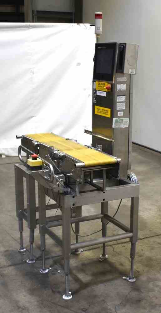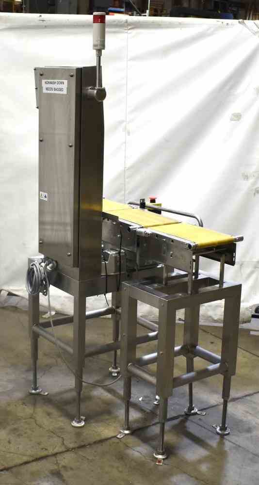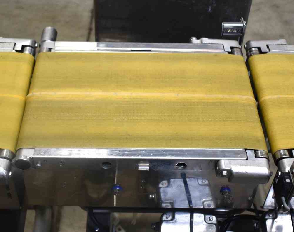 Used Anritsu Industrial Solutions Checkweigher, Model KW5366AW66. Capacity 12 to 1200 grams maximum. Maximum speed 270 pieces per minute. Temperature range 0 to 40 degrees C. (3) 8" Wide x 13-1/2" long belts. Serial# 4600137706.