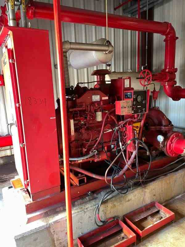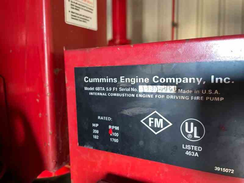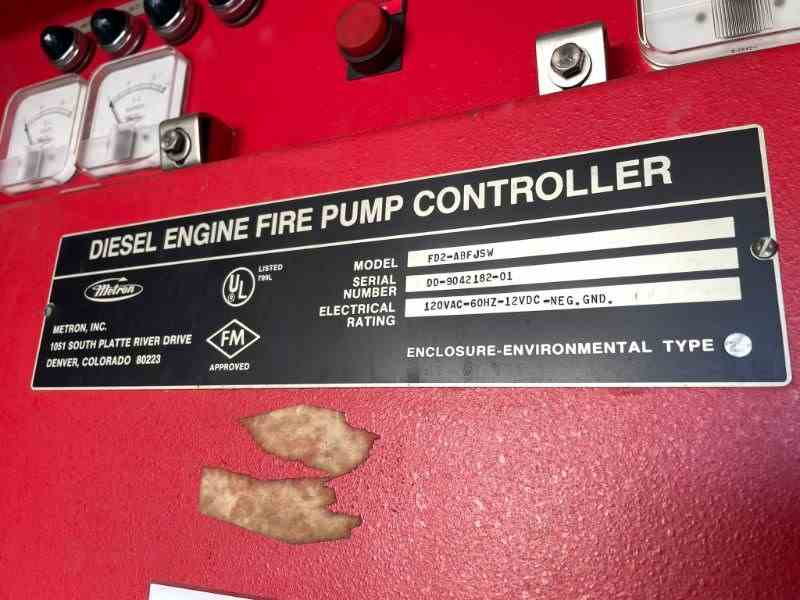 Used Metron 1500 GPM Fire Pump. Model FD2-ABFJSW. Cummins 244 HP diesel engine. Model 6BTA 5.9 F1. Serial #44395860.