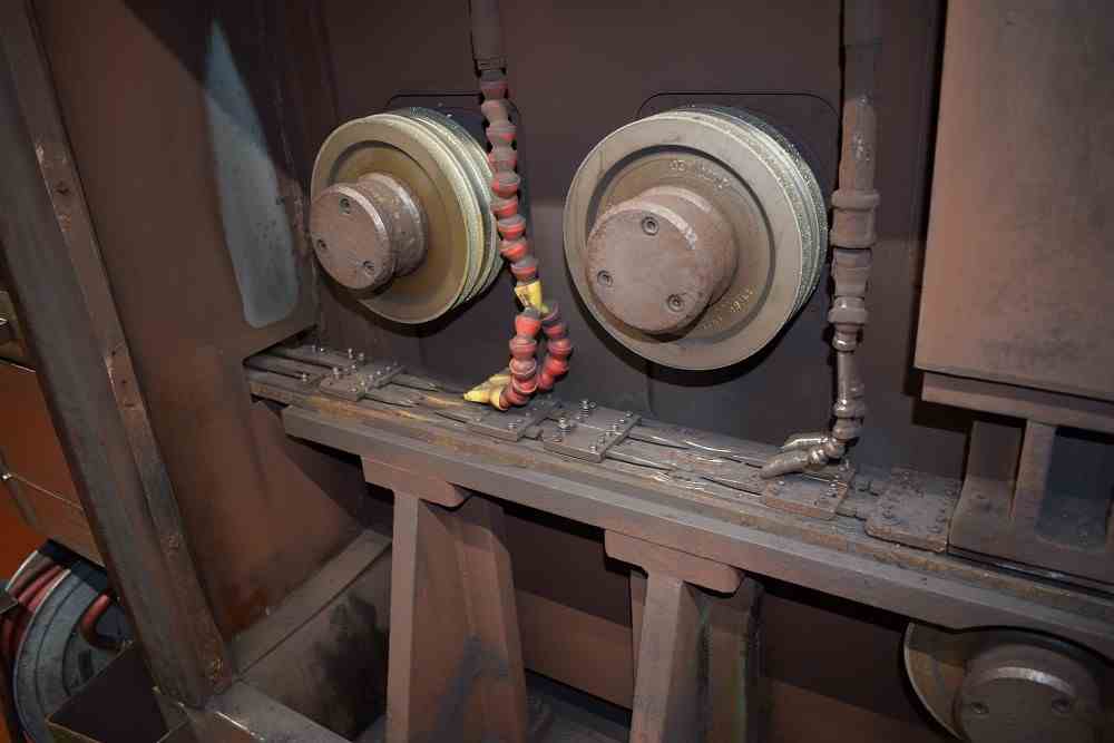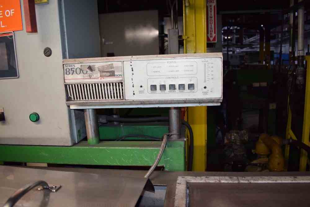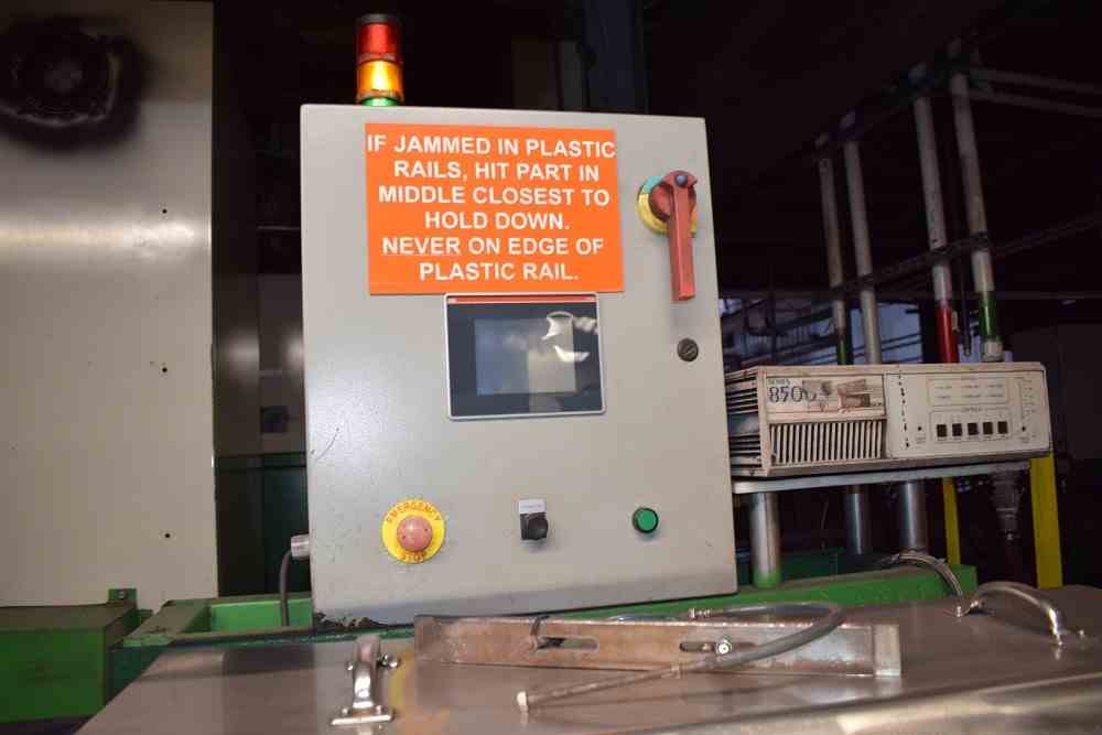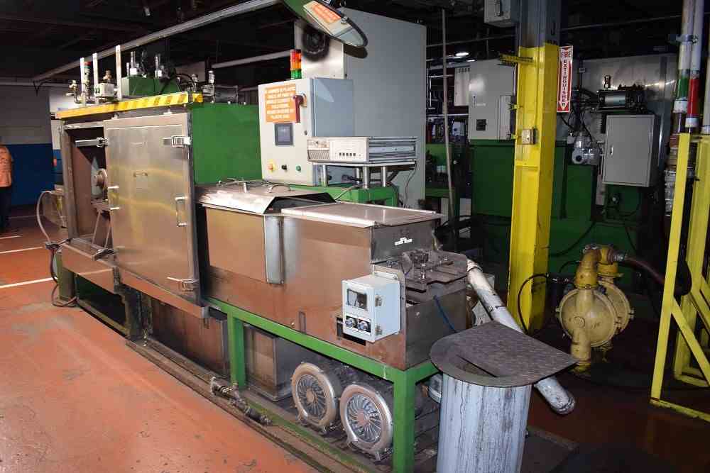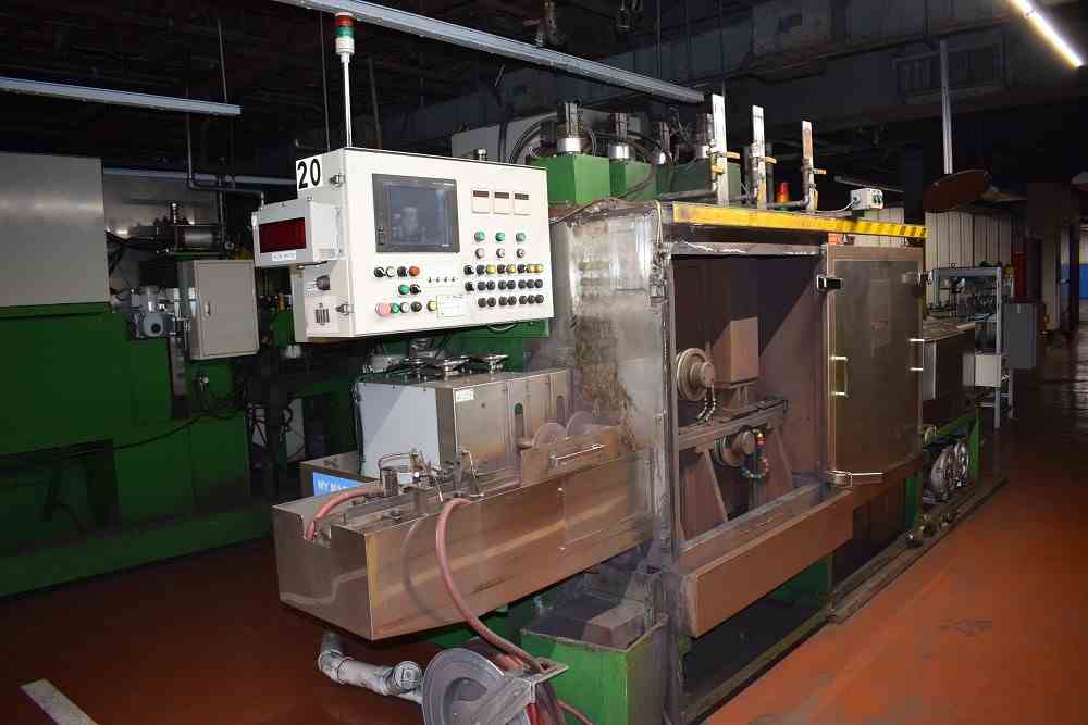 Used MEI Parallel grinder with conveyor, high-pressure sonic parts cleaner. Separate Controls.