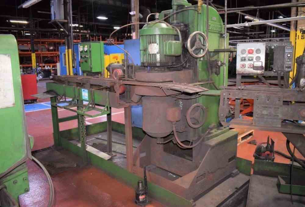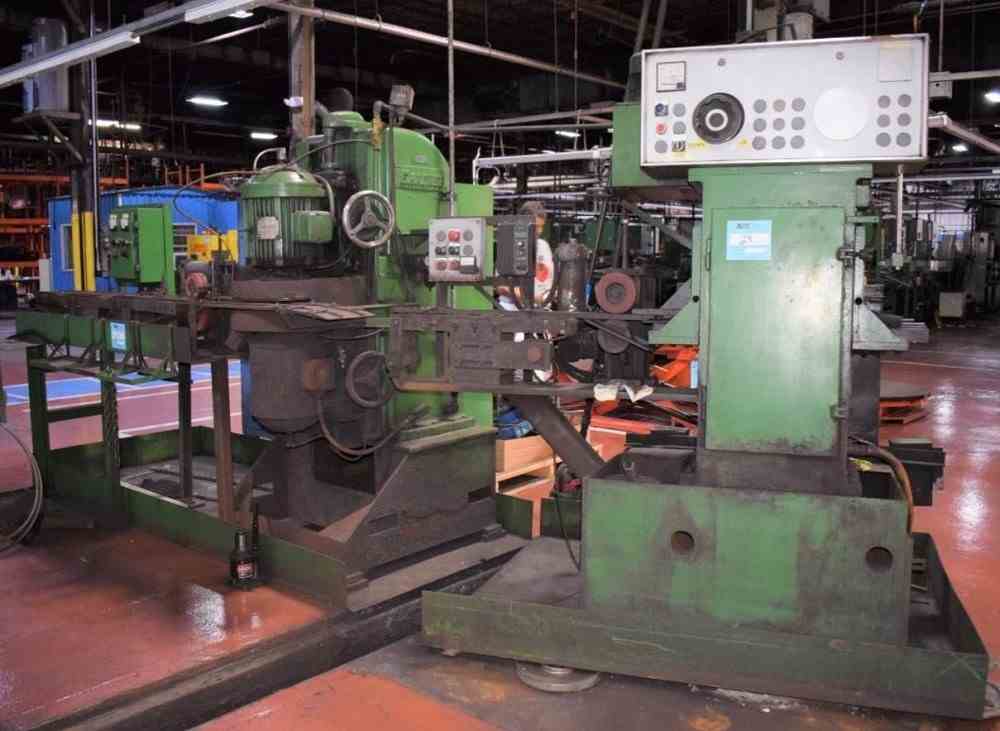 Used Grinding System. With (1) Gardner pre-grinder, model 2V-18, infeed belt, upper/lower grinding wheels, Serial# 579.1. (1) Comec single wheel finish grinder with infeed