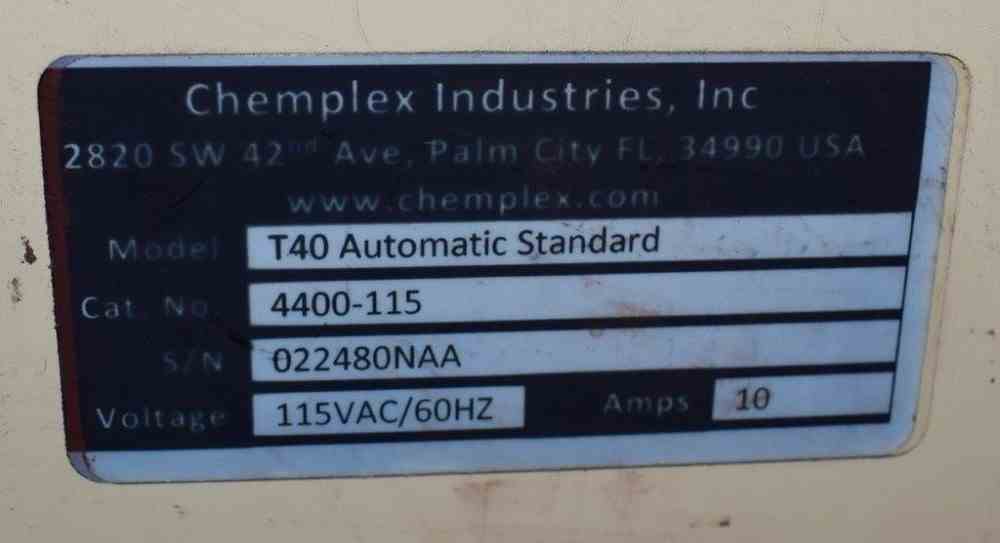Used Chemplex SpectoPress Model T40 Automatic Standard 40 ton press, SN. 022480NAA. 115V/60 Hz.