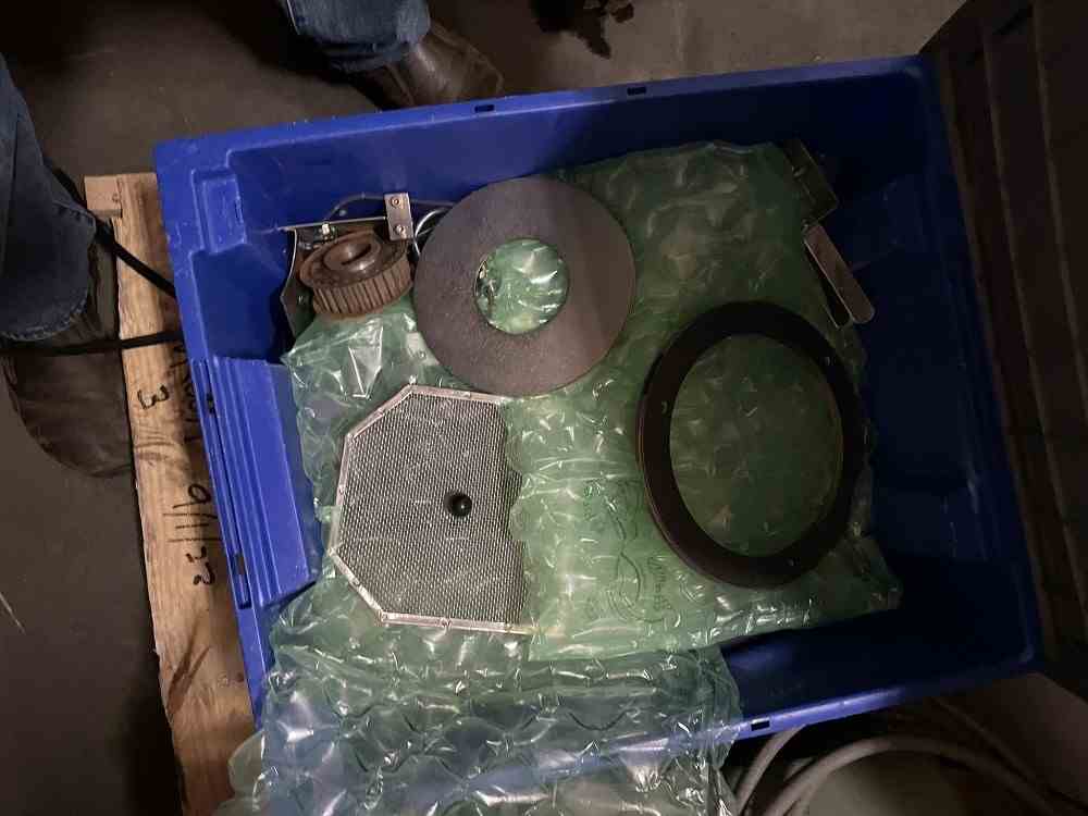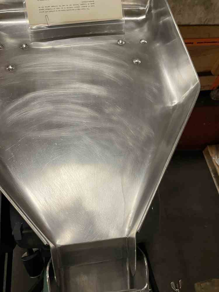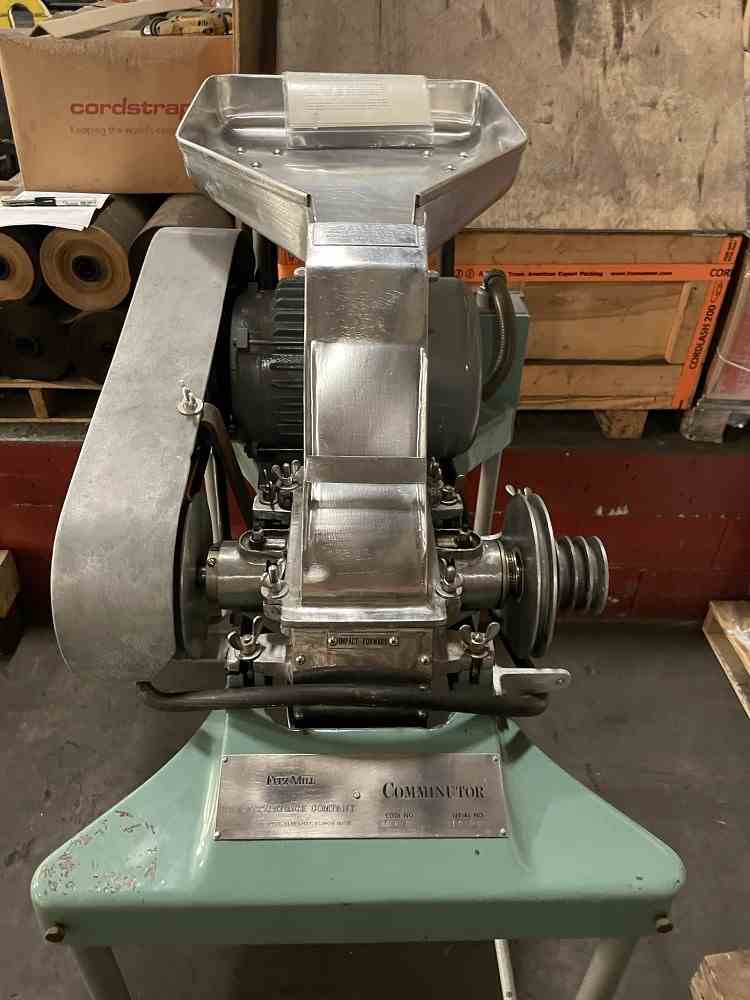 Used Fitzpatrick Communitor M5. 5HP motor. Pan fed. CS Stand mounted on casters. Extra Screens and components. Serial #1879. Built 1993.