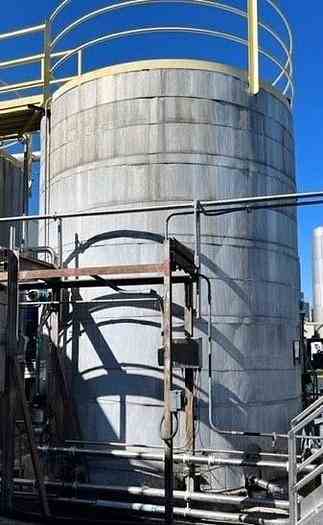 Used 12500 Gallon Stainless Steel Insulated Tank. Measure approximately 12' diameter x 14'6" high, flat bottom. Past use sucrose and corn syrup storage tank. Catwalk and ladder not available.