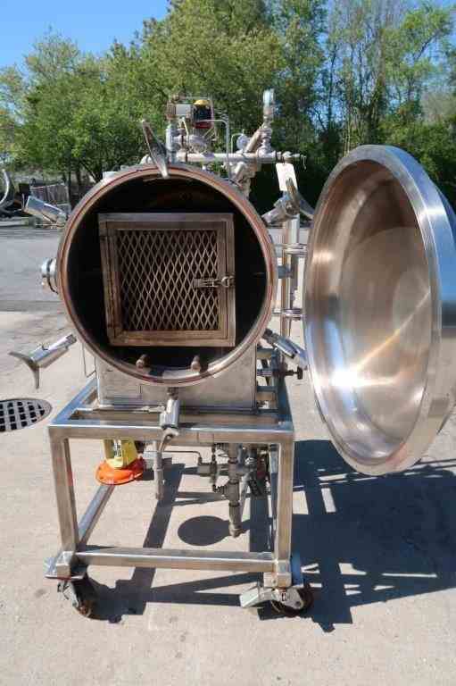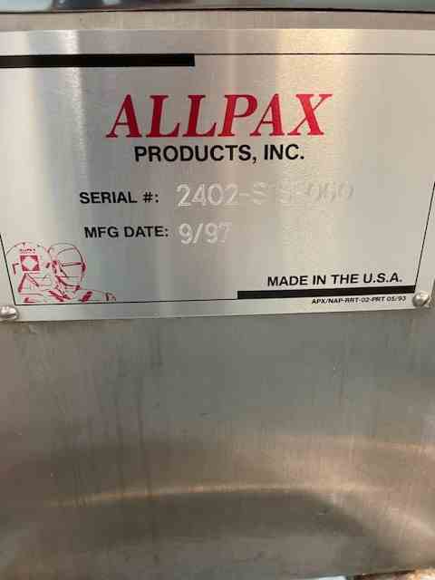 Used Allpax Products 2402 horizontal Retort. Size R&D. Rated 45PSI/FV@325F. 17"L x 16"W x 16"H basket. 24"D access door. National Board #1467. Vessel Serial #9578. System Serial #2402-S1S-060. Built 1997.