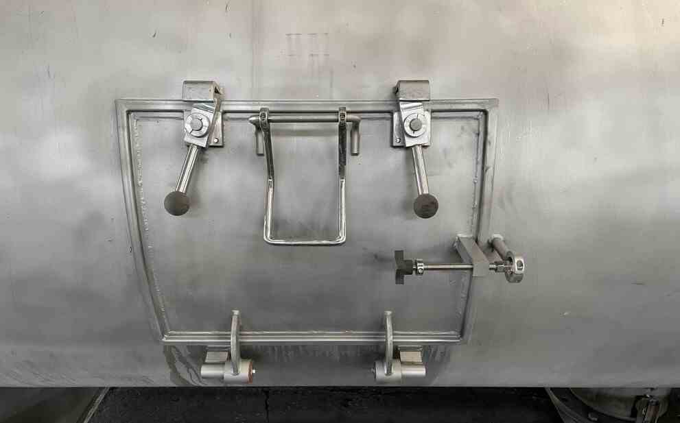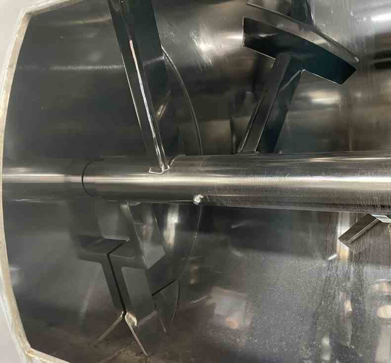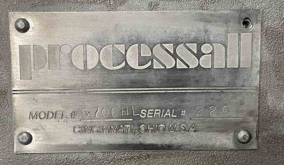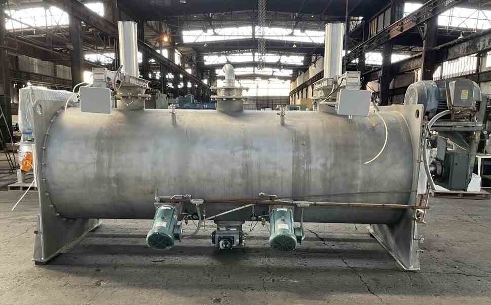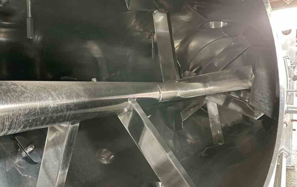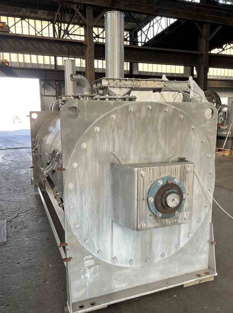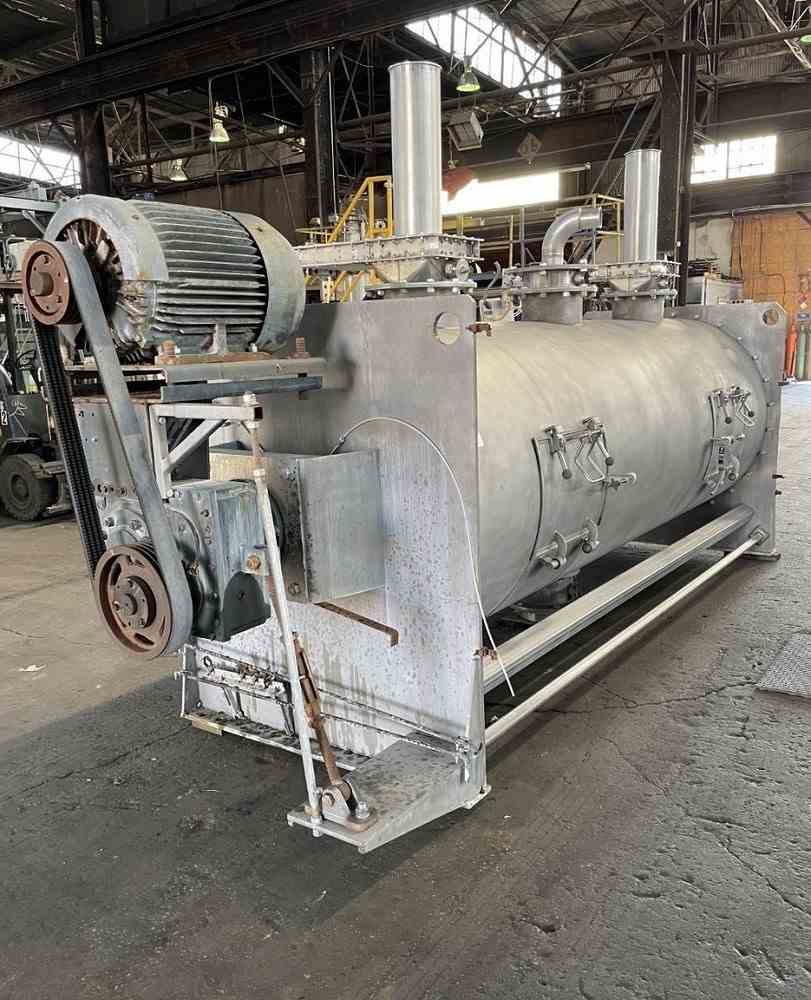 Used 200 Cu ft Stainless Steel Plow mixer. Manaufactured by Processall. Model 5700HL. 5700 liter capacity. 200 cu ft total capacity/140 cu ft working capacity. (2) 10 hp high speed choppers. Air purge seals. 75HP main motor drive. (3)12" top ports, 8" bottom outlet with valve. Serial# 220. Built 2003.
