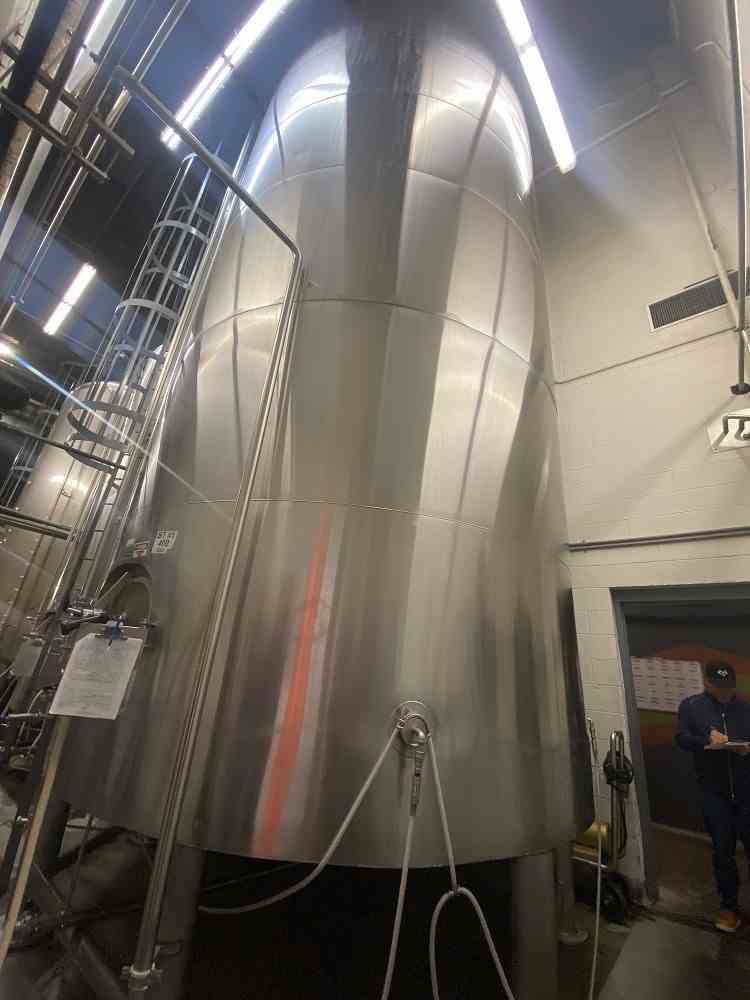 Used 13483 gallon 304 stainless steel Tank. Manufactured by JVNW (ICC). Serial #12927. 25'-11" Height, 10'-7" diameter. CIP, Dished top and bottom head, jacketed, insulated. Jacket and shell rated 15 psi max pressure. 16"x22" side manway. 2" drain extension with hanger, 2" vent extension. Tank #12927, total weight 12041 lbs. Built 1996. Previous use: 400BBL Bright Beer Tank.