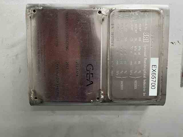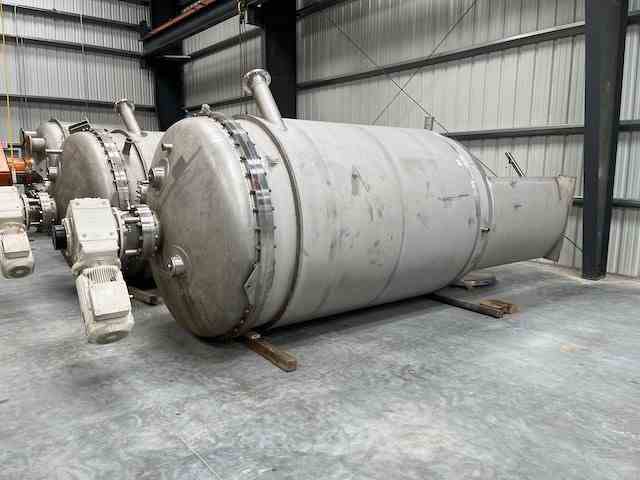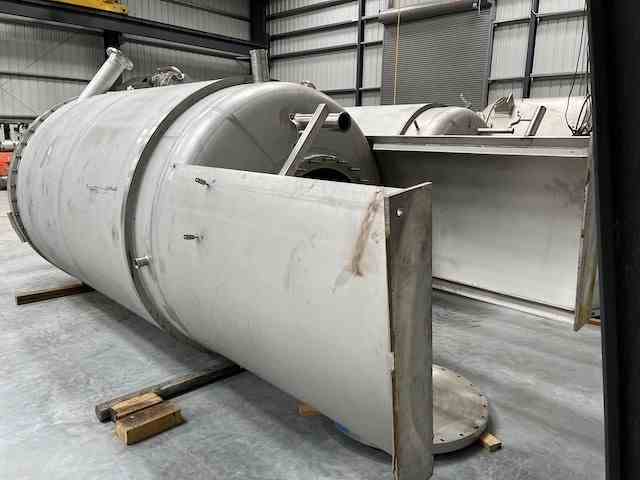 Unused 3000 Gallon (11.5 m3) 304L Stainless Steel Double Wall Crystallizer. Manufactured by GEA. Jacketed. Internal rated -2.90/43 psi ( -.2/3 BARG) @-13F/203F (@-25C/95C), jacket rated -7.25/43psi (-.5/3 BARG) @-13F/203F (@-25C/95C). 18.5kW motor with top mounted side scraper agitation. 84" dia x 20' tall. NB #1260, Serial #091212097B Weight 13000 lbs. Built 2013. Previous use: Crystallizer Stage 2 in GEA freeze concentration plant.