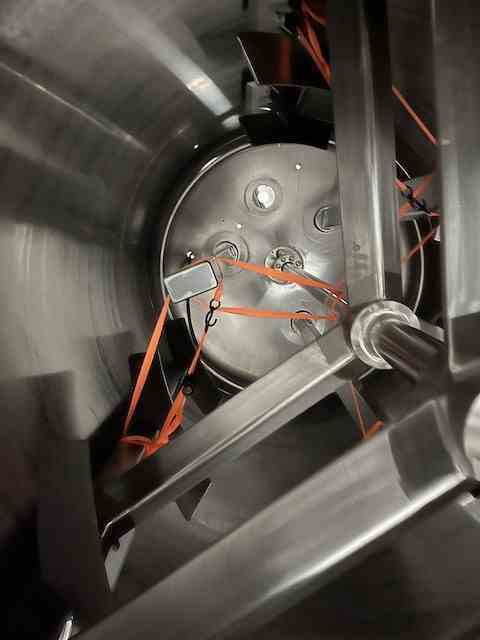 Unused 3000 Gallon (11.5 m3) 304L Stainless Steel Double Wall Crystallizer. Manufactured by GEA. Jacketed. Internal rated -2.90/43 psi (-.2/3 BARG) @-13F/203F (@-25C/95C), jacket rated -7.25/43psi (-.5/3 BARG) @-13F/203F (@-25C/95C). 18.5kW motor with top mounted side scraper agitation. 84" dia x 20' tall. Sanitary Polished Internal and sanitary clamped nozzles. NB #1257, Serial #091212096A, Weight 13000 lbs. Built 2013. Previous use: Crystallizer Stage 1 in GEA freeze concentration plant.