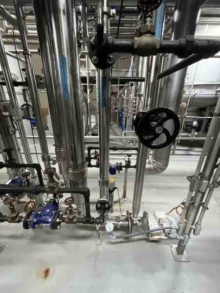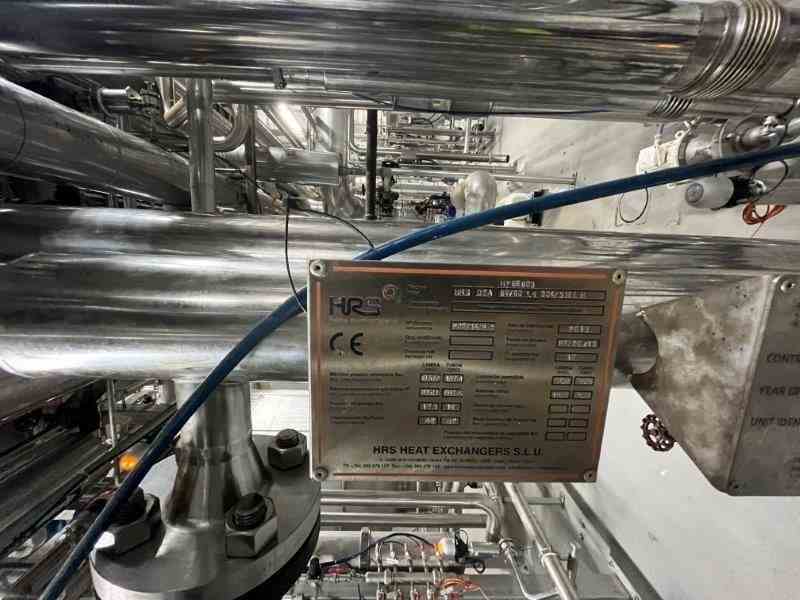 Unused 12.7 liters corrugated tube stainless steel heat exchanger. Manufactured by HRS. Model DTA 89/60. Shell material 316L, 253 psi (17.5 bar) max pressure @401F (205C), tube material 304SS, 217 pai (15 bar) max pressure @140 F (60C). Serial #P097714/2-3. Built 2013. Previous use: Product heater in GEA freeze concentration plant.