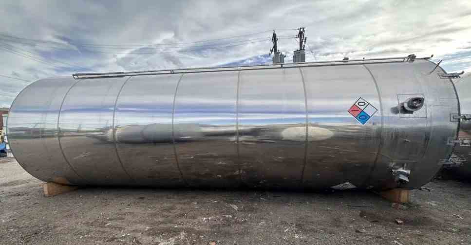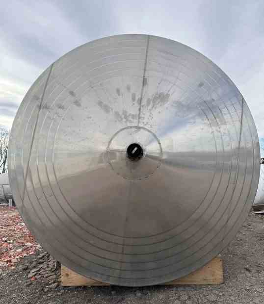 Used 29000 gallon 304 Stainless Steel vertical tank. Manufactured by Herpasur SA. (110,000 liter). 146" D x 413" Straight Side (442" OAH). Cone top, 5% slopping bottom. Siphon style discharge and bottom outlet. Built 2007. Previous use: Olive Oil Storage.