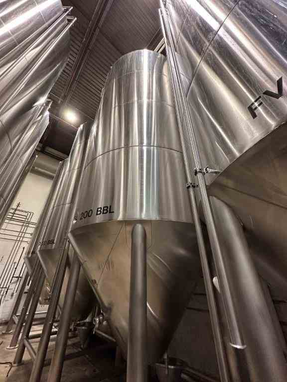 Used 200 BBL Vertical Cone Bottom 304 Stainless Steel Jacketed Vessel. Manufactured by JV Northwest (ICC) in 1996. Serial stamp only (no dataplate, no ASME/UM/National Board stamp). Spray ball CIP, cone bottom, dished top. Previous Use: 200BBL Jacketed/Insulated Unitank for Beer Fermentation.