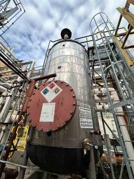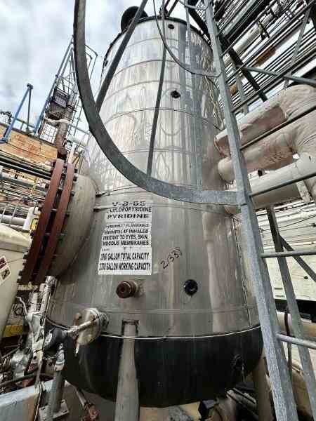 Used 3000 gallon Duplex 2205 stainless steel jacketed reactor body/pressure vessel. Manufactured by Watson Metal Masters Inc. Shell rated 100 psi @450F. Jacket rated 125 psi @355F. 73.75" dia x 218" OAH. Dished bottom and head, side manway. Serial #3991-1. Built 2010. Weight 10765 lbs. Previous use: Pyridine Storage.