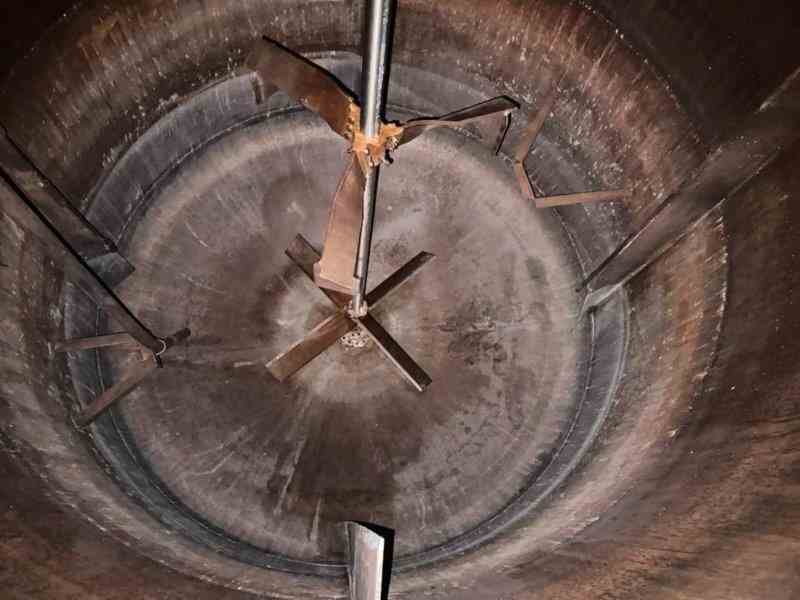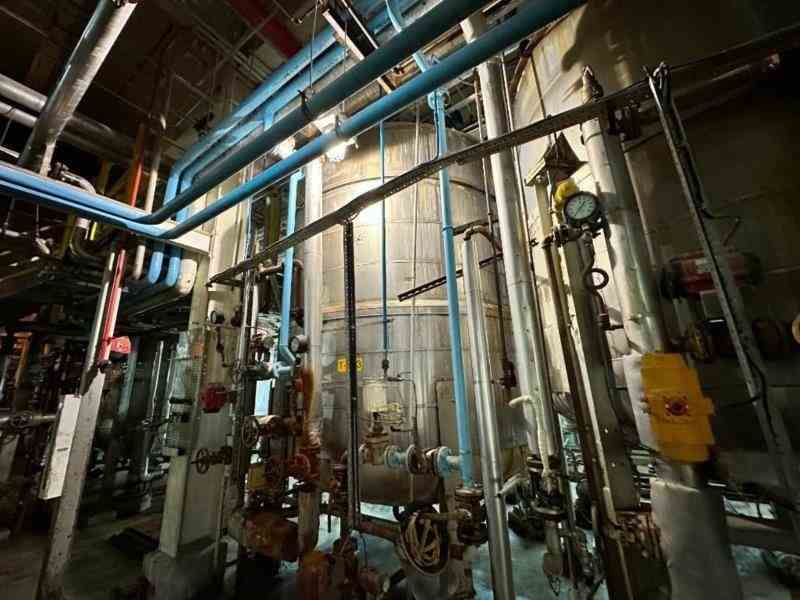 Used 5000 gallon 304 stainless steel steam jacketed mixing tank. Carbon Steel jacket rated 45 psig @300F with top mounted agitator. (4) Internal Sidewall Baffles, flat top and dished bottom.