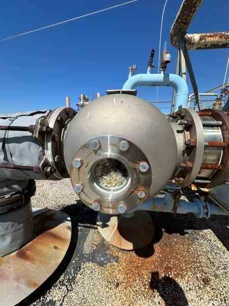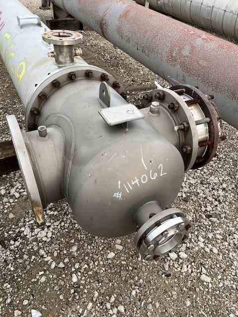 Used 1089 sq ft stainless steel shell and tube heat exchanger. Manufactured by Hoffman Process. 304L SS shell rated 150psi @450F. (231) 1" 316L SS tubes rated 150psi @150F. National Board #808. Serial #3185B. Built 2000.