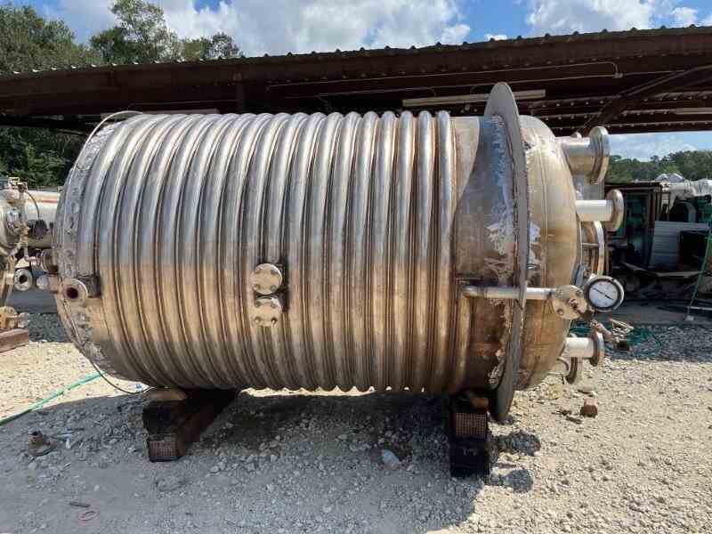 Used 1500 gallon 316L Stainless Steel reactor. Manufactured by Alloy Fab. Internal rated 90PSI/FV @390F. Jacket rated 230PSI @450F. 13.5 kW Ekato Agitator, type EM 100D, designed for 1300 kg/m3. Serial #86/12611. Dished heads. Lug mounted. National Board #1759. Serial #2888. Built 1986. Previously used in API facility.