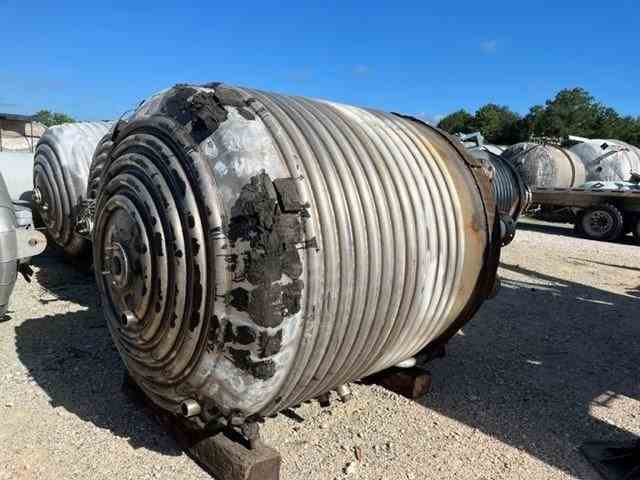 Used 1500 gallon 316L Reactor. Manufactured by S. Nolte and Sons Inc. Internal Rated 90PSI/FV @390F. Jacket rated 230PSI @450F. 316L ss 3" half pipe coil jacket, (5) turns @ 4 1/2" pitch shell bottom head and (2) zones of (9) turns @ 4 1/2" pitch on shell O.D. Top entering Philadelphia agitator, model # PTES-12, 15/7.5 hp 1750/875 rpm drive motor. 316 stainless steel anchor type impellers. Dished Heads. Lug mounted. National Board #1796. Built in 1986. Previously used in API facility.
