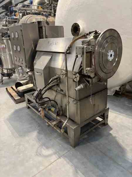 Used 300mm Dia 316 Stainless Steel Inverting Filter centrifuge. Manufactured by Heinkel. Model HF300. 300 mm (12") basket inside diameter. 2 cubic feet nominal basket volume. 1 sq ft basket area. Includes hydraulic pack. Serial #1031/12. Built in 1990.