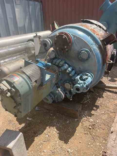 Used 300 gallon Glass Lined vertical Reactor with conventional carbon steel jacket. Manufactured by De Dietrich. Agitated. Internal rated 100 psi/FV @400F. Jacket rated 100 psi @400F. Built 1972. Serial #11553.