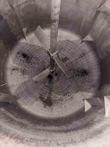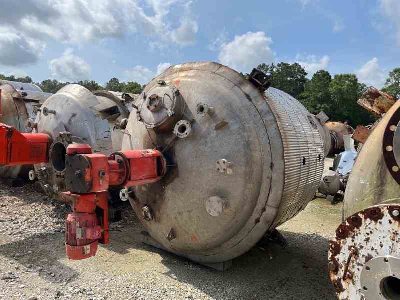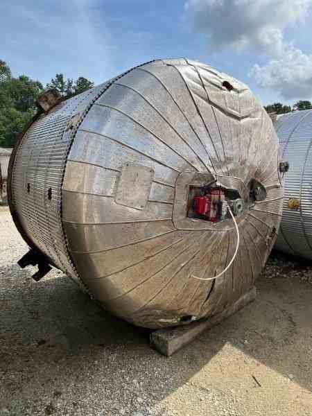 Used 2200 gallon 316L SS processor. Manufacturer Alloy Fabricators. Shell rated 15PSI@120F. 304 SS 2" half-pipe jacket rated 85PSI@120F. 10HP agitator. (4) Sidewall baffles. Dished Heads. (4) Lug mounted. Dims 7'Dia x 6' T/T. weight 5040 lb. Serial #1-130A. Built 1991. Past use Condensation Vessel