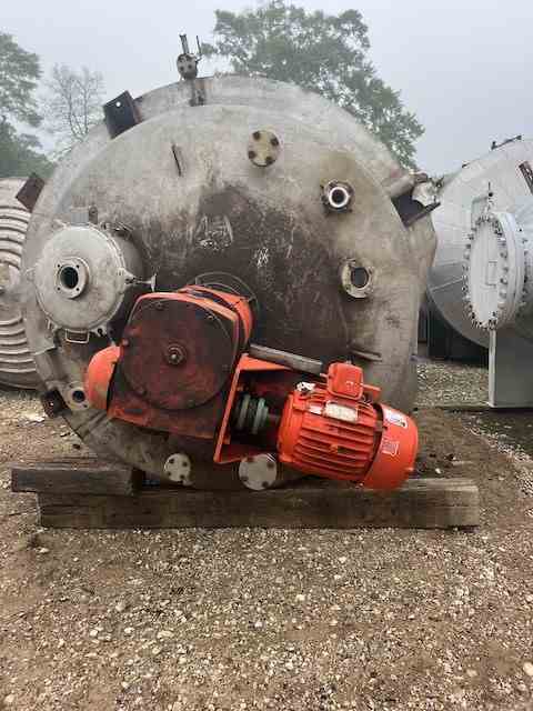 Used 2200 gallon 316L Stainless Steel processor. Built by Alloy Fab. Shell rated 15PSI@120F. 304 SS jacket rated 85PSI@120F. 10HP agitator. (4) Sidewall baffles. Dished Heads. (4) Lug mounted. Dims 7'Dia x 6' T/T. weight 5040 lb. Serial #1-172A. Built 2000. Past use Condensation Vessel