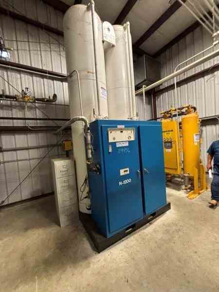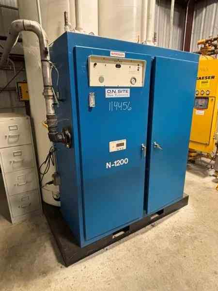 Used 16000 SCFH PSA Nitrogen Generator. Built by On Site Gas Systems. Model N-1200. 99% purity. Max 15789 SCFH. Serial #5055.