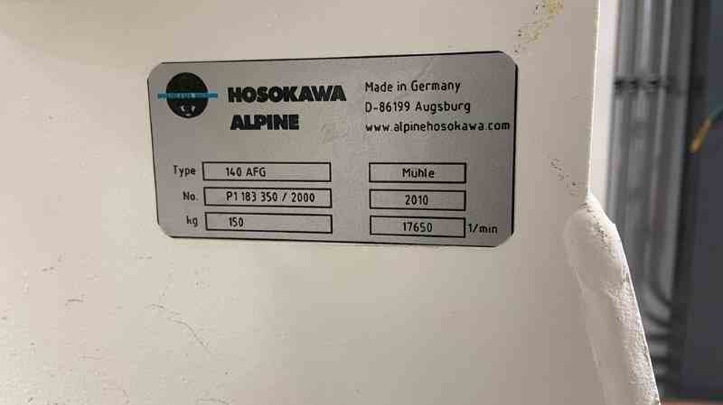 Used Hosokawa Alpine Model AFG 140 Air Jet Mill. Includes Allen-Bradley Panelview Plus 1500 controls. Serial #P1 183 150/2000. Built 2010.