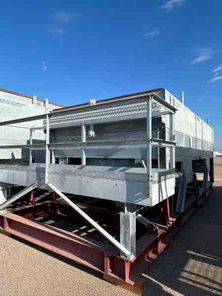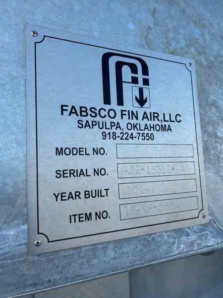 Unused 32655 sq ft carbon steel finfan heat exchanger. Manufactured by Fabsco. 1555 bare sq ft. 21.8 MMBTU/hr design duty. 24'0" SA-179 Carbon Steel tube length. 550FV design pressure barg. @ 555 deg. F. design pressure. (2) 20 hp fans. Dimensions: 29'10" l x 13'2" w x 10'9" h (with platform) 12'1" w (w/o platform), 32,365 lbs weight. Designed as Isomerization Effluent Air Cooler. Built 2024. Under nitrogen purge.
